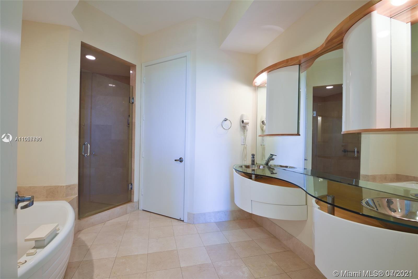 Huge 1 Bed , 2 Full bathrooms, 2nd bathroom is upgraded having shower. Laminate floors, top of the line appliances.s Enjoy the luxury resort style amenities such as the two-story spa and fitness center, 4 pools, tennis courts, food and beverage services, beach chairs, valet, 24-hour security . Enjoy the lifestyle at Trump Palace!! Don't miss this one!!