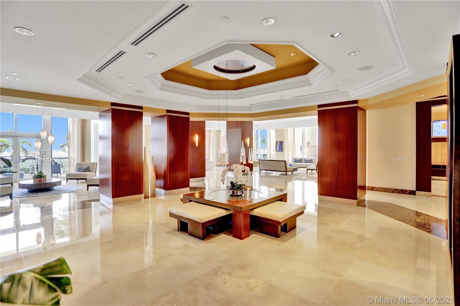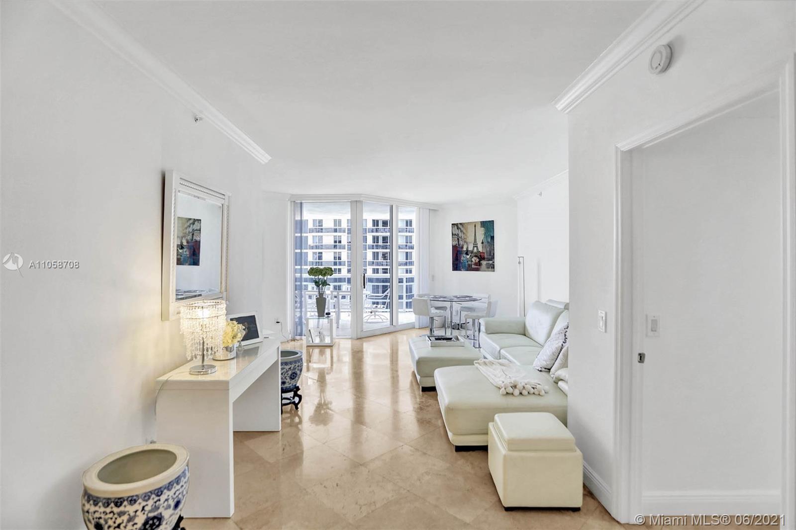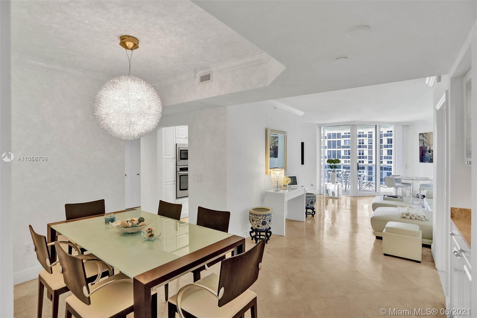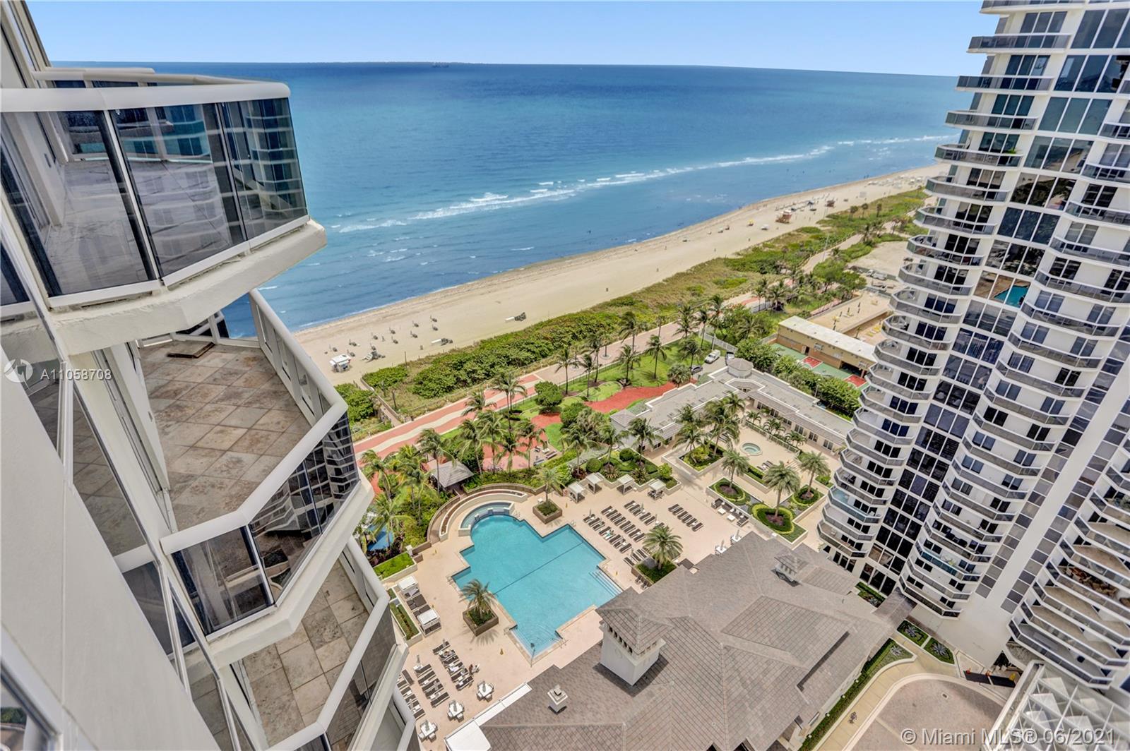 Stunning views of Ocean, bay and city from every room and extra large balcony. This 2/2 + Den apartment features a split floor plan with marble floors throughout, floor-to-ceiling windows, eat-in-kitchen with granite countertop, dining room/living room, walk-in closets, spacious bathrooms, washer/dryer plus 2 double parking spaces, that can park 4 cars! 1st class amenities: 24hr security, valet, concierge, tennis, pool & towel service, cafe/market w/room service, a 16,000sf oceanside clubhouse/spa, gym, personal trainers, free workout classes, steam/ saunas, hot tubs, card & party rooms, nursery, playroom, billiards, business center, beach attendant, and more!