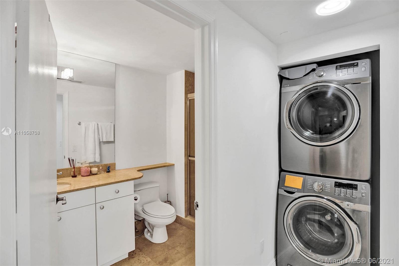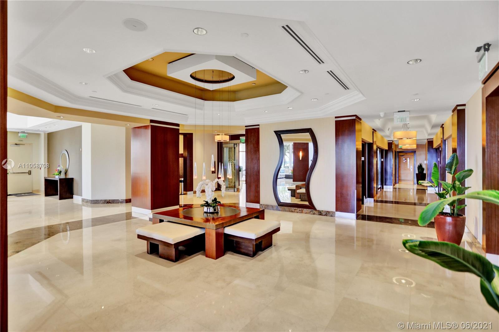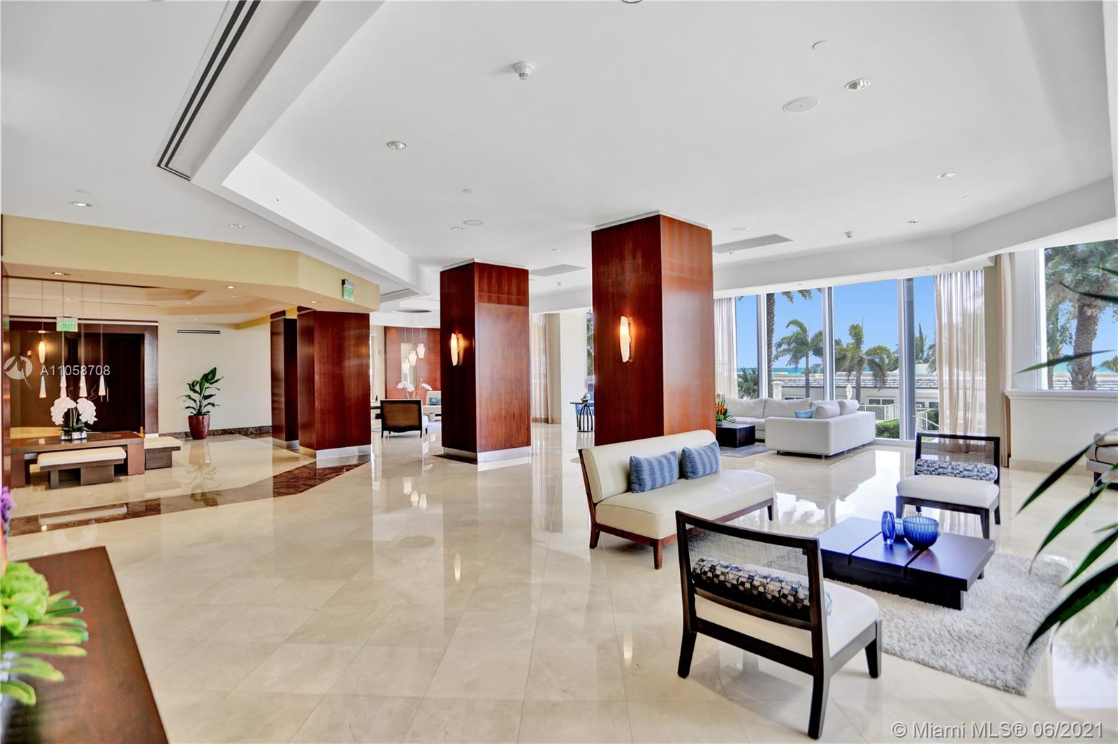 Stunning views of Ocean, bay and city from every room and extra large balcony. This 2/2 + Den apartment features a split floor plan with marble floors throughout, floor-to-ceiling windows, eat-in-kitchen with granite countertop, dining room/living room, walk-in closets, spacious bathrooms, washer/dryer plus 2 double parking spaces, that can park 4 cars! 1st class amenities: 24hr security, valet, concierge, tennis, pool & towel service, cafe/market w/room service, a 16,000sf oceanside clubhouse/spa, gym, personal trainers, free workout classes, steam/ saunas, hot tubs, card & party rooms, nursery, playroom, billiards, business center, beach attendant, and more!