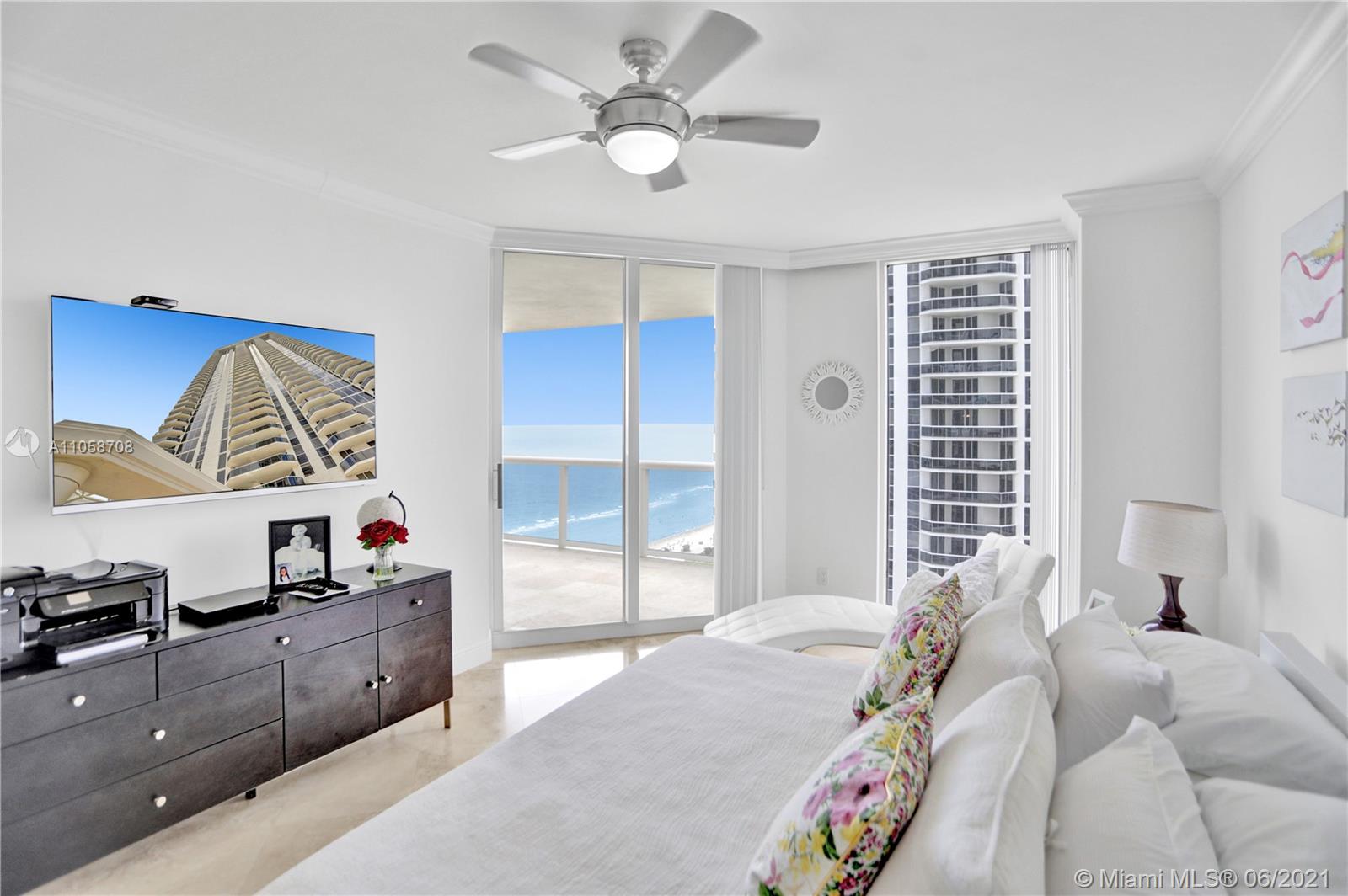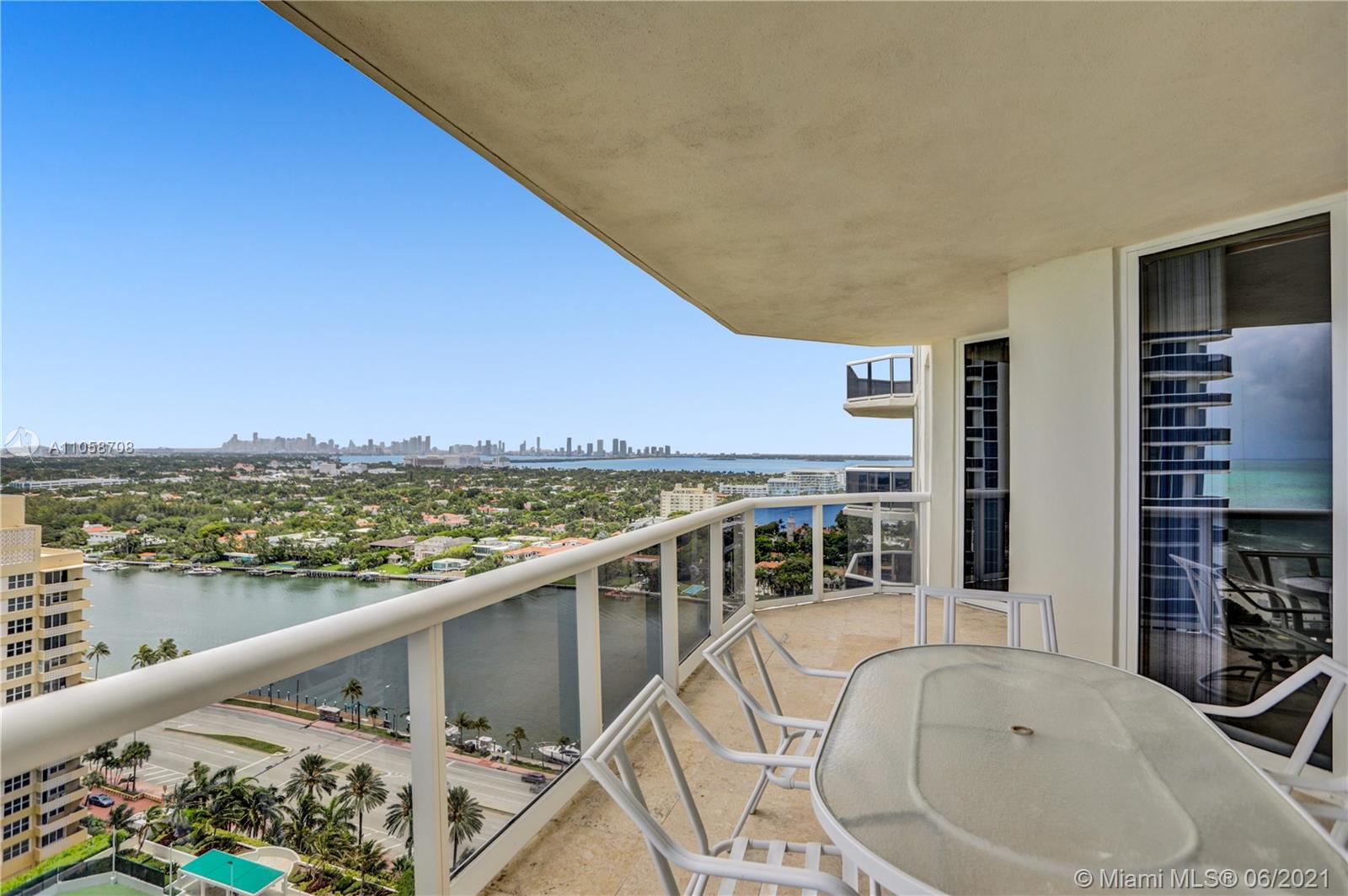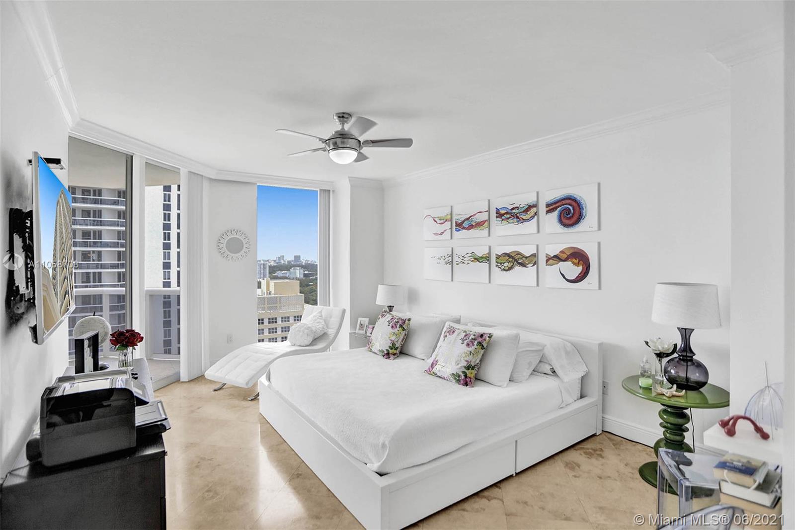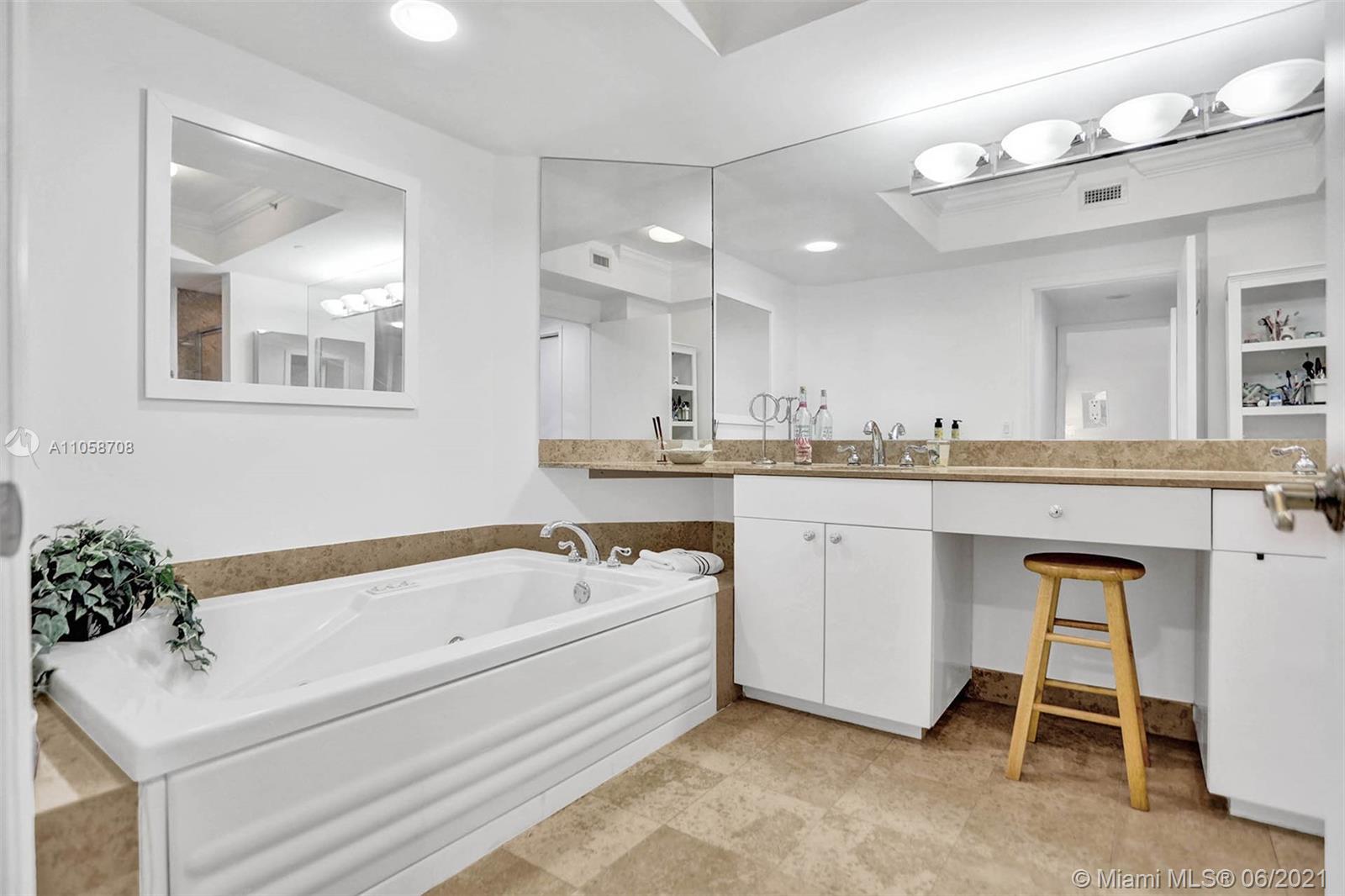 Stunning views of Ocean, bay and city from every room and extra large balcony. This 2/2 + Den apartment features a split floor plan with marble floors throughout, floor-to-ceiling windows, eat-in-kitchen with granite countertop, dining room/living room, walk-in closets, spacious bathrooms, washer/dryer plus 2 double parking spaces, that can park 4 cars! 1st class amenities: 24hr security, valet, concierge, tennis, pool & towel service, cafe/market w/room service, a 16,000sf oceanside clubhouse/spa, gym, personal trainers, free workout classes, steam/ saunas, hot tubs, card & party rooms, nursery, playroom, billiards, business center, beach attendant, and more!