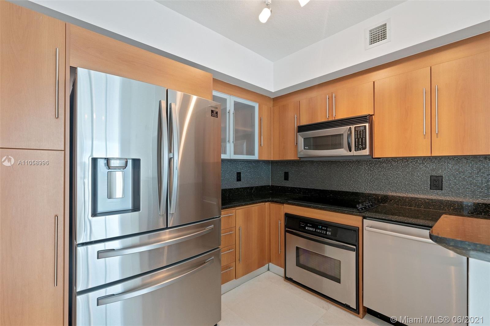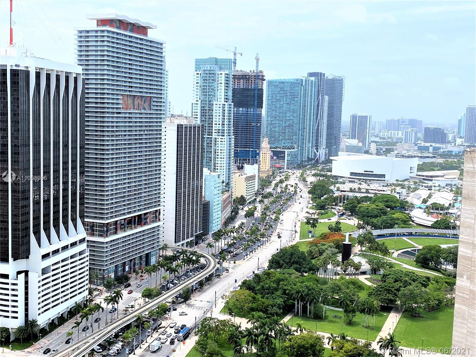 BEAUTIFUL recently updated corner unit on desirable One Miami East Tower Condo. Unit offer amazing Bay view, 24 X 24 French Vanilla marble floors all throughout including balcony. Marble bathrooms W/ new cabinets. Bosch A/C Unit. Italian kitchen cabinets, back splash & granite counter-tops, new refrigerator, dishwasher, washer & Dryer. White curtain in living, black outs in bedrooms. 2 swimming pools, Jacuzzi, 2 Party Rooms, 2 Gyms, Convenience Store and 24 hrs security, valet, and concierge. Centrally located within minutes to Design District, SoBe, Grove, Gables, and Airport. Walking distance to Whole Foods, movies, restaurants, Brickell City Center, Art and Entert District, Perez Museum and Miami's famous Metro Mover (free transit system). This unit is the place you want to call home!