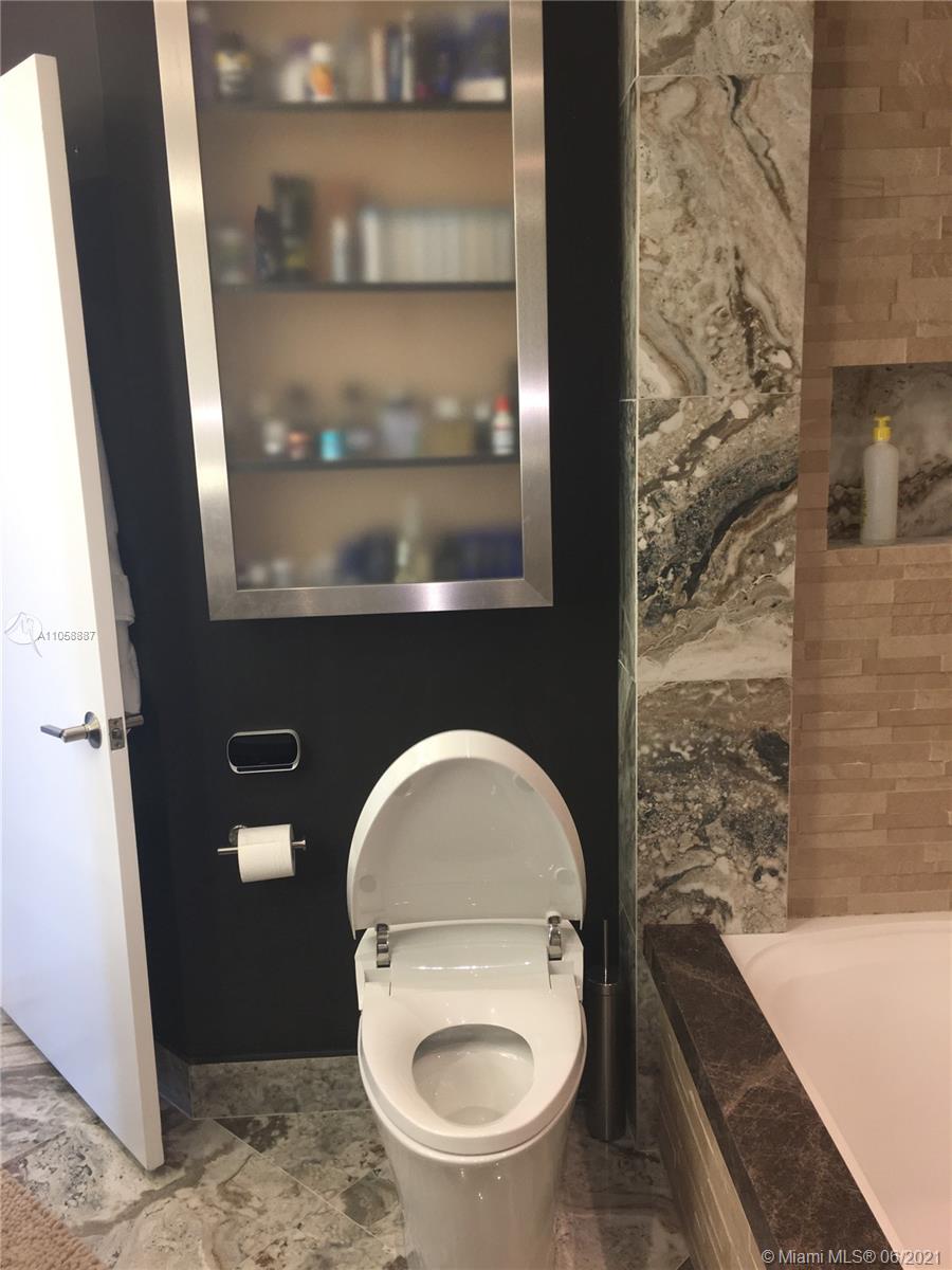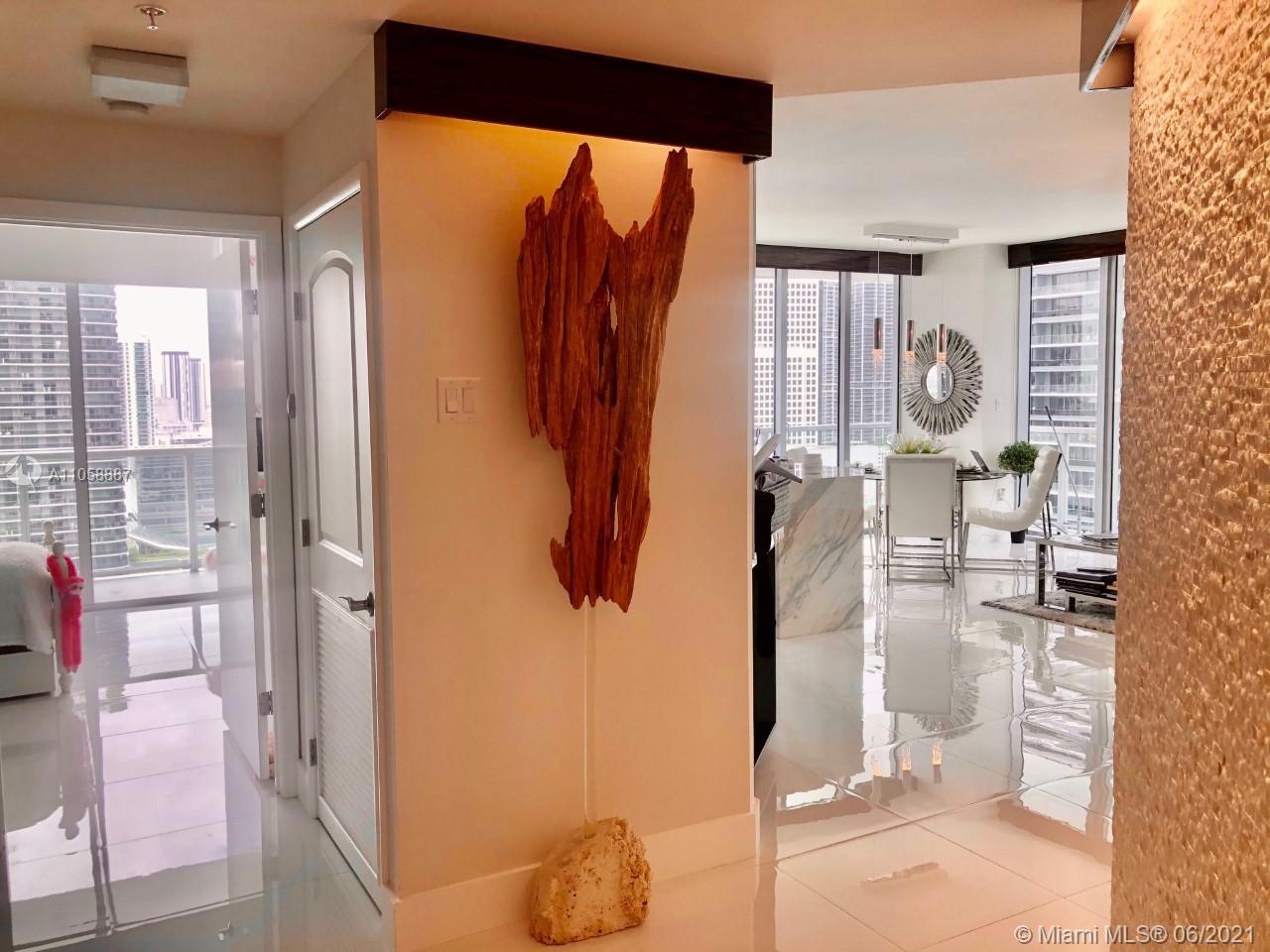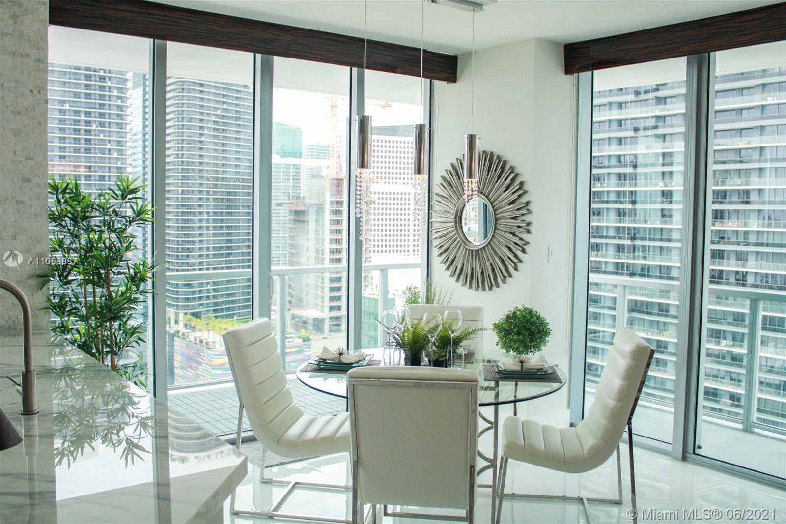 LUXURIOUSLY Upgraded 2/2 CORNER at Axis on Brickell with wraparound balcony, High-end, Elegant FINISHES; Marble kitchen and bathroom counters, UPGRADED Appliances, Window Treatment and Fixtures, Digital Pad lock and Nest included. Inbuilt Safe in the master bedroom. North East corner of the north tower, TILE floors throughout. High floor Open City and Sunset Views, 1 Parking Space included. European white cabinetry, floor to ceiling glass windows, and wide wraparound balconies. BEST LOCATION, in the heart of Brickell. Steps to Mary Brickell Village. Across from People Mover and Metro Rail. Luxury building designed by award winning Arquitectonica.