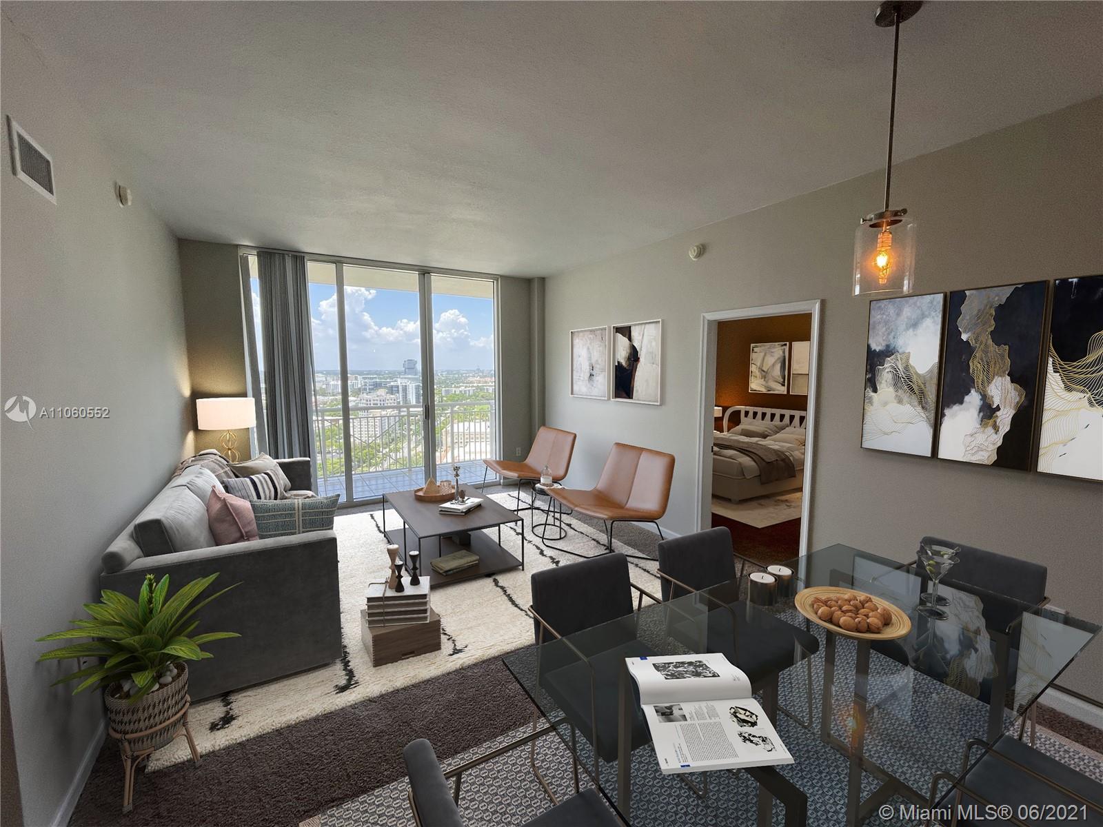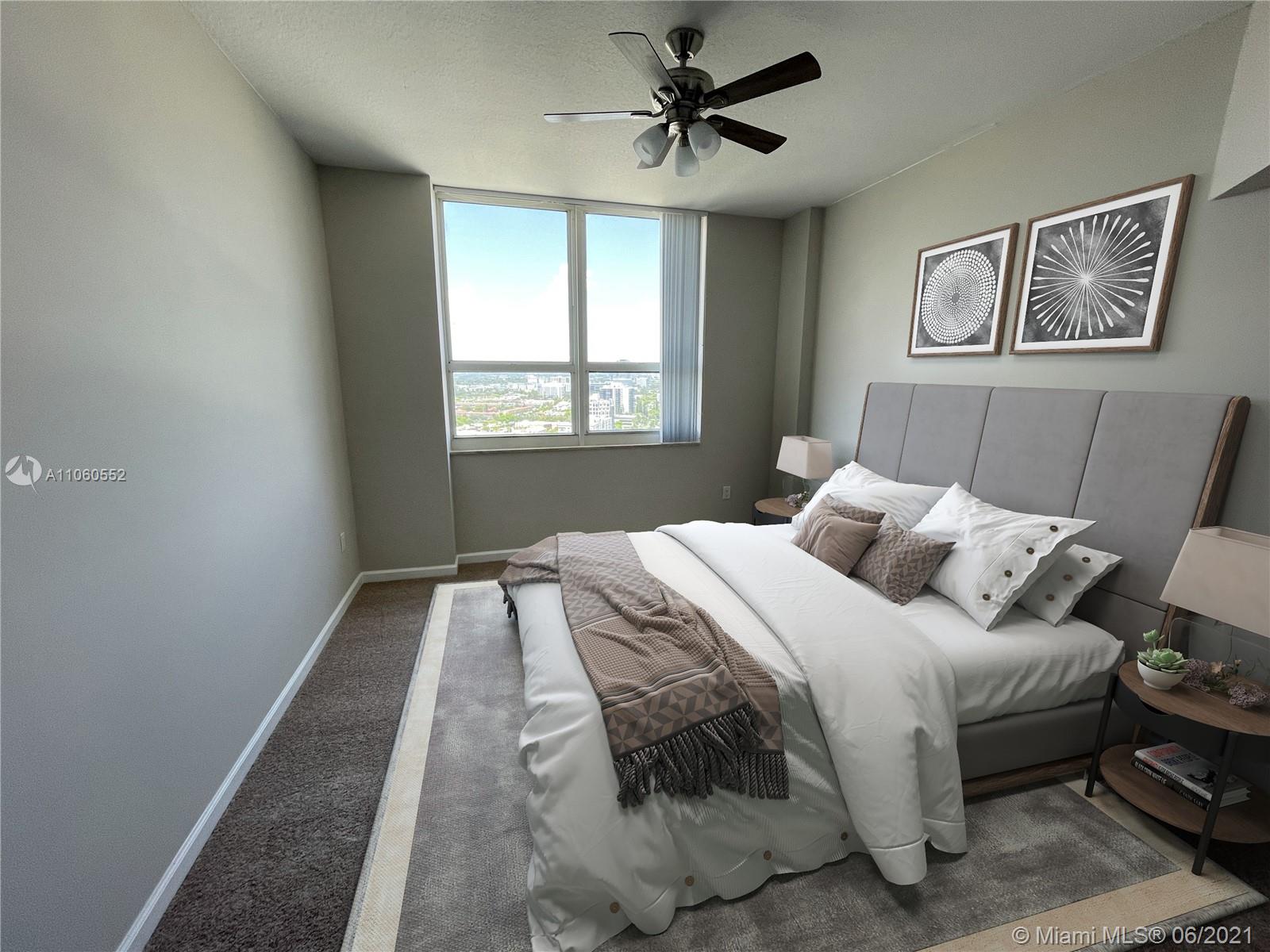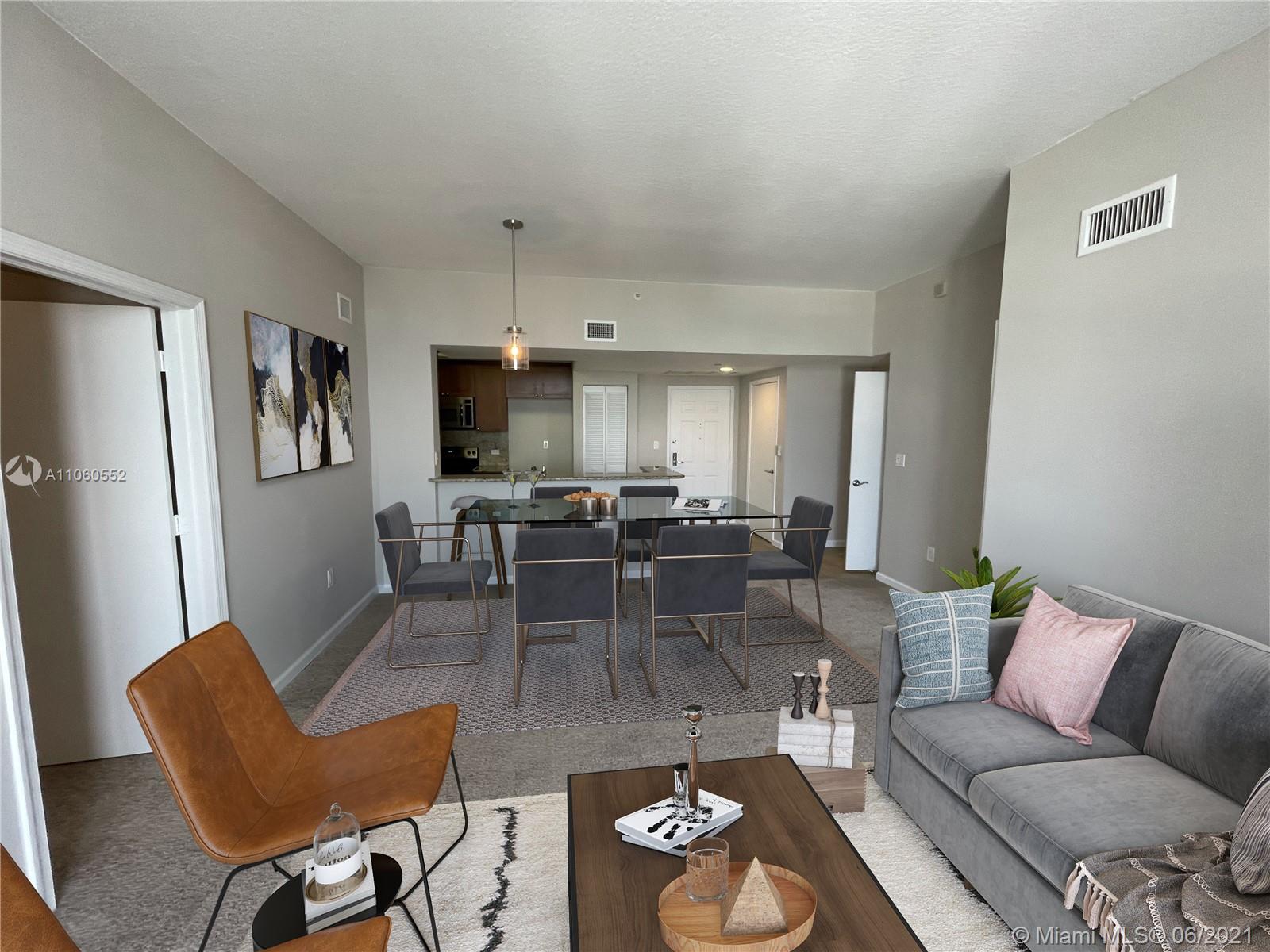 Amazing views from this penthouse unit! Beautiful 2 bedrooms / 2 baths penthouse with new carpet installed in living areas and bedrooms and a fresh coat of paint throughout. Open layout kitchen with granite counter top and stainless steel appliances. Building offers many amenities such as: gym, sauna, heated pool, 24-hour front desk, clubhouse, etc. Across the street from Aventura Mall and a 5-minute drive to the beach. No rental restrictions! To help visualize this home’s floorplan and to highlight its potential, virtual furnishings may have been added to photos found in this listing.