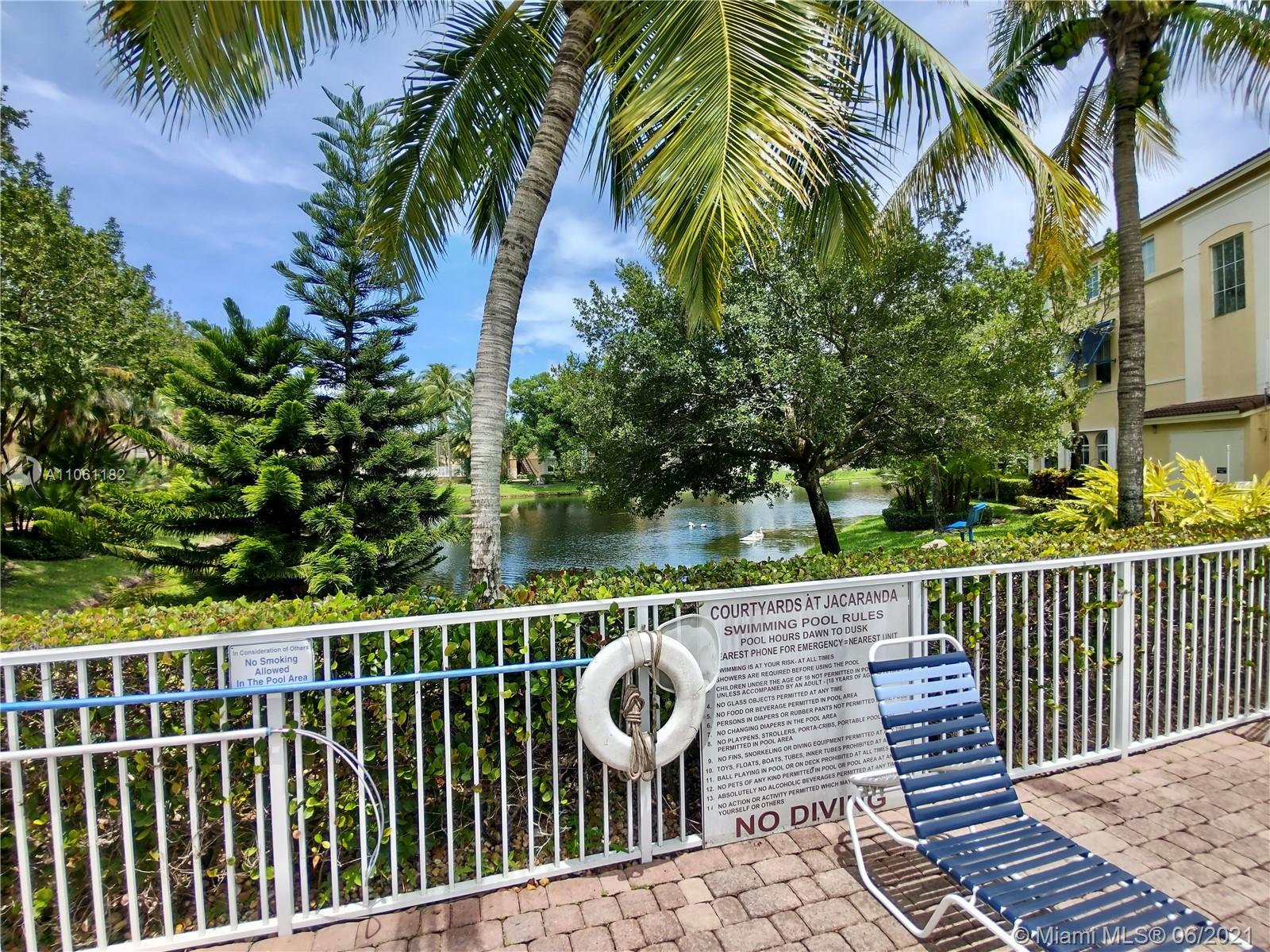 This lovely 3/2.5 condo is in a gated community. Impact windows. Ceramic wood floors. Rheem AC system installed in 2015. Close to everything that Plantation has to offer. Walking distance to Jacaranda Country Club. The unit is in great condition and has been updated. 2 assigned parking spots along with additional parking for guests.