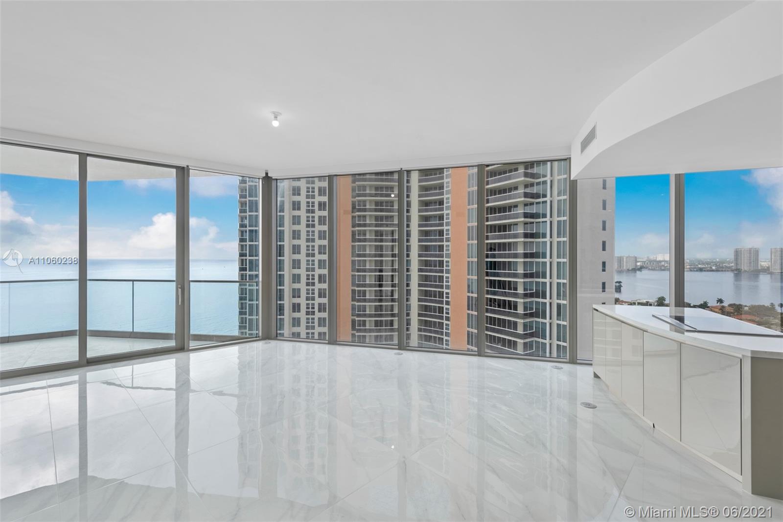 Beautifully finished with calacatta porcelain flooring, California closets and electric window treatments. This brand new 2 bed/2.5 bath corner residence plus den features a state-of-the-art kitchen with appliances and an expansive terrace with stunning ocean and bay views. 5-star amenities such as a bar, spa, sauna, cigar room, wine room, hair salon, heated pool, jacuzzi, and more make it easy to enjoy living a luxury lifestyle in Sunny Isles Beach, Florida.