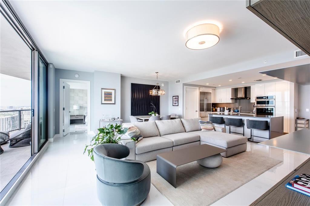 HIGHEST "B" FLOOR AVAILABLE! Imagine the impressive views from the 36th floor, soaring high above downtown Ft Lauderdale! 2BED+DEN/2.5BA luxury condo boasts a contemporary design with Custom Built-ins, California Closets, White porcelain tile throughout. Floor-to-ceiling windows with motorized black-out shades in bedrooms. Modern Kitchen w/ Nolte European cabinets, Quartz Counters & backsplash. Jenn-Air Euro Stainless appliances, Wine Cooler. Grohe & Koehler fixtures. Double panel sliding doors lead out to a 310 ft terrace with glass railings perfect for outdoor living & entertaining. Catch morning sunrises & evening sunsets and enjoy distant ocean views. Storage & 2 tandem-parking spaces. 4-Star amenities including a Hyatt Branded hotel on lower floors offers restaurant, bar & guest rooms
