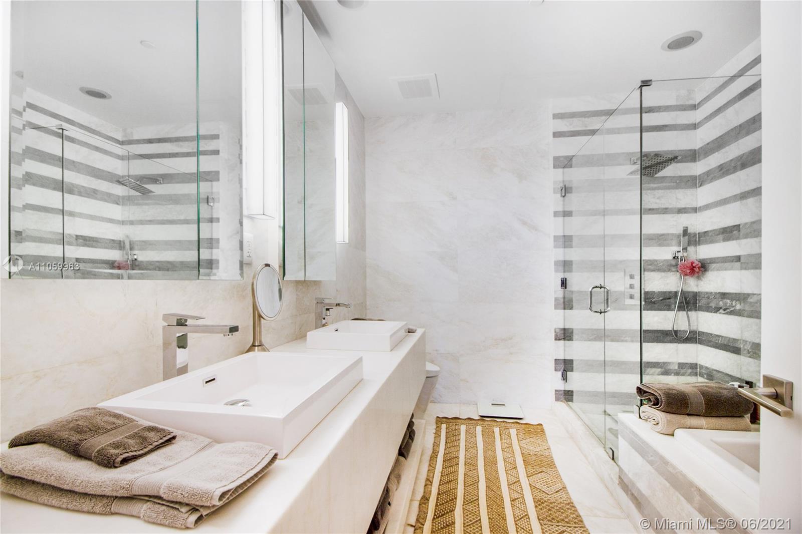 Enjoy incredible views from this gorgeous 2 bedroom + den, 1,732 SF condo located in the exclusive boutique building Marea. Unit has its own private elevator entry and top of the line finishes throughout including marble and wide wood planks. Kitchen is equipped with Wolf and Subzero appliances. Building offers a rooftop pool, lounge area, fitness center, sauna and spa. It is located in the heart of the South-of-Fifth (SoFi) district, just a few blocks from the Ocean, South Pointe Park and some of the best restaurants in Miami. Tenant occupied - 24hrs notice.