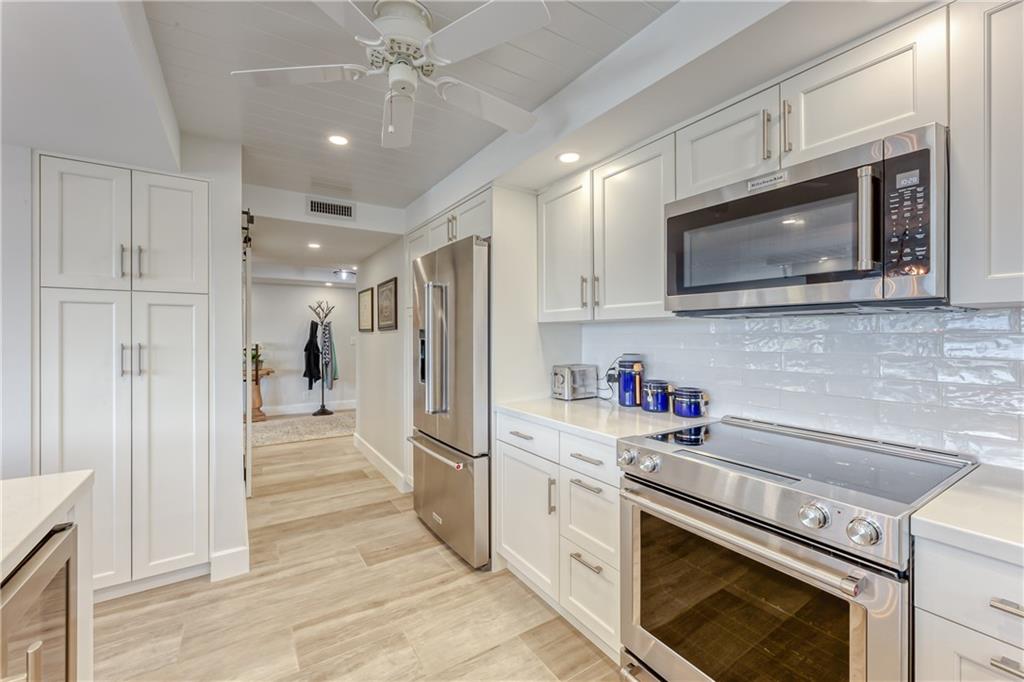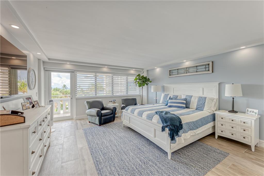 No Expense Spared on this Recent, TOTAL Remodel, Including Top of the Line Porcelain, Wood Plank Flooring Thru-out, Raised Entryway & Kitchen Ceilings w/Ship Lap, Stunning,Open Kitchen w/Ocean & Palm Tree Views,"Smart Closet" w/sound system & internet,3 Bedrooms w/Ensuite Baths. 2 which are "split" Master Suites, enhancing Privacy. Closets & Storage Galore + a Separate Laundry Room w/Full Size Washer and Dryer. 2 AC's and 2 Water Heaters. 2 Covered Parking. Impact Windows, 2 Balconies. New Ducts & Sound Wall Installed during renovation. Remote Shades thru-out. Designed & Remodeled by the Best! Absolutely Nothing to do, but Move In and Enjoy the Serenity, Privacy & Ocean Views at This Spacious, 2650 sq. ft. CORNER Unit that Lives like a House. Private Beach, 24hr guard, fitness rm, pool