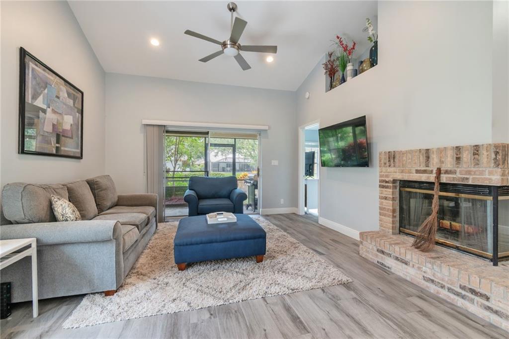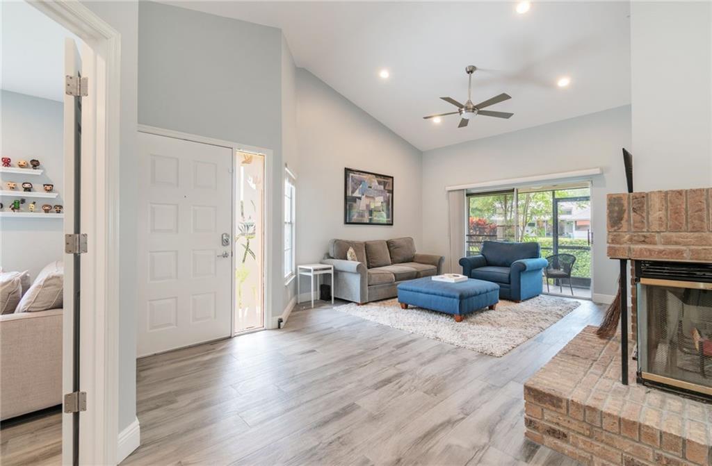 The charm and attention to detail in this completely renovated villa is superb. The sophisticated kitchen has quartz countertops with white textured backsplash, new white cabinets with modern hardware, S/S appliances and tons of storage. The wood burning brick fire place is the center of the home complimenting the open floor plan that becomes alive with the sunlight that pours in through the windows and skylights. The master bath is very spacious, room for a sitting area. Master bath features dual sinks, a large walk-in closet, linen closet and a separate water closet with shower. Screened in patio w/ view of the waterway. Community pool, water, sewer, building insurance, roof, landscaping,& common areas are all included in maintenance. 2020 roof & exterior paint completed.