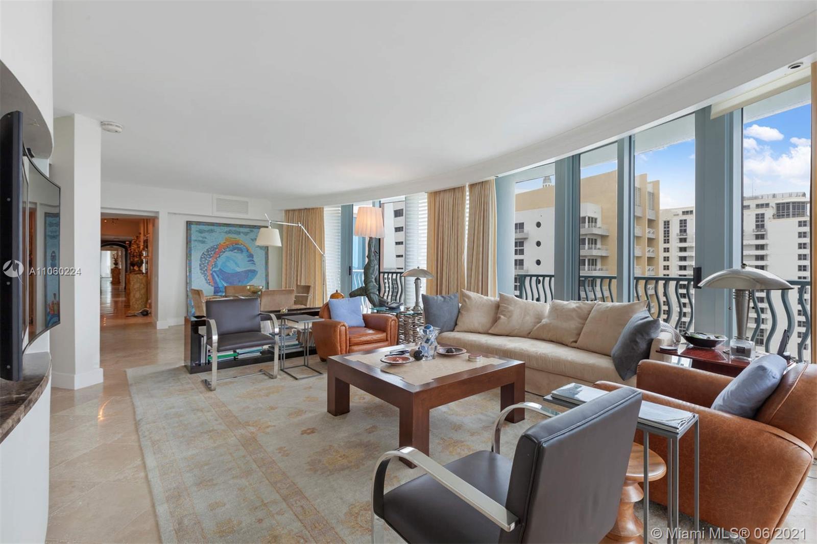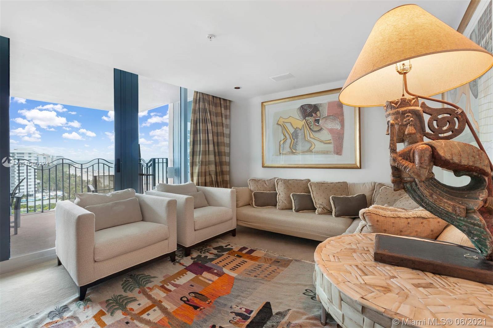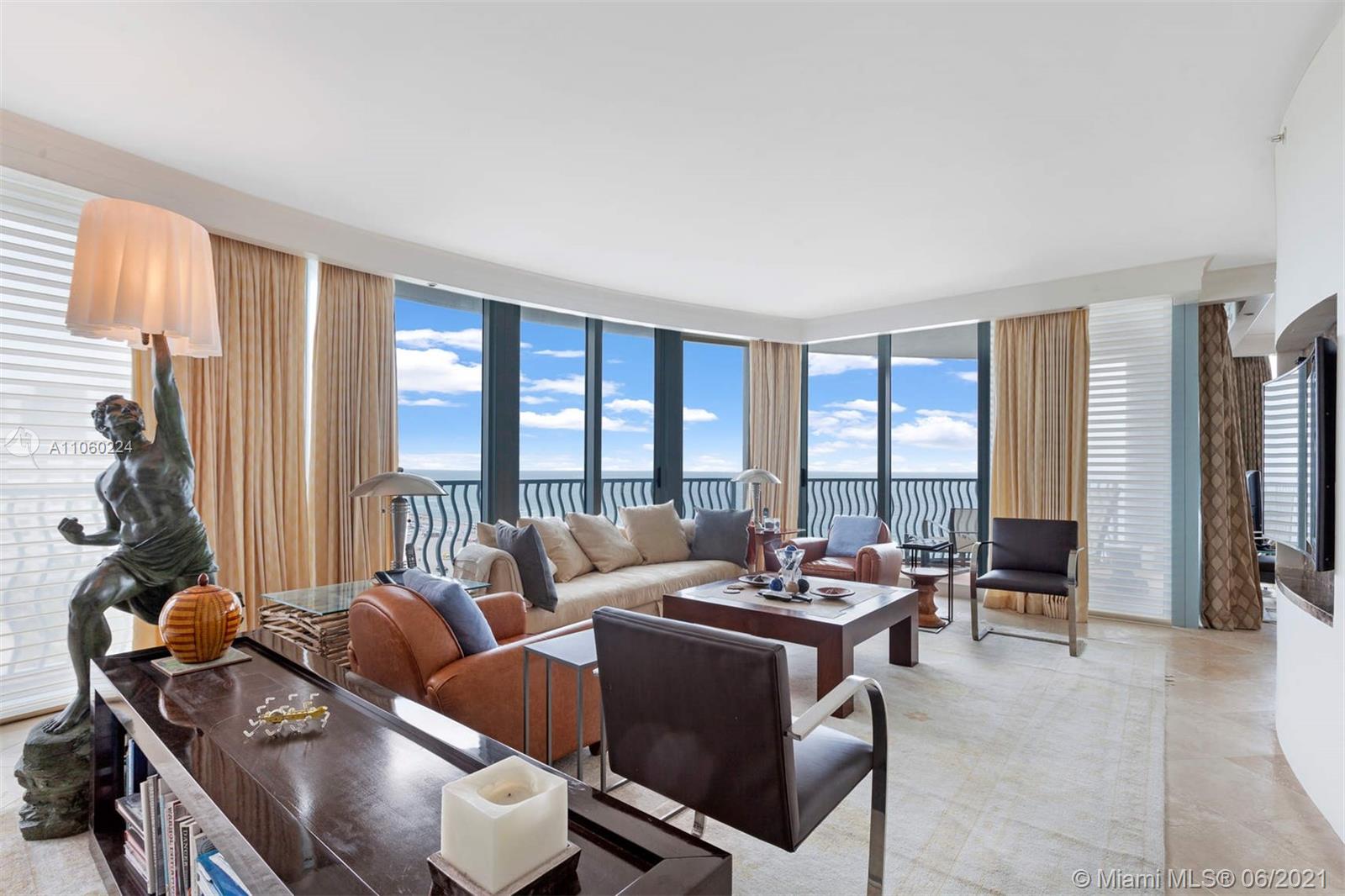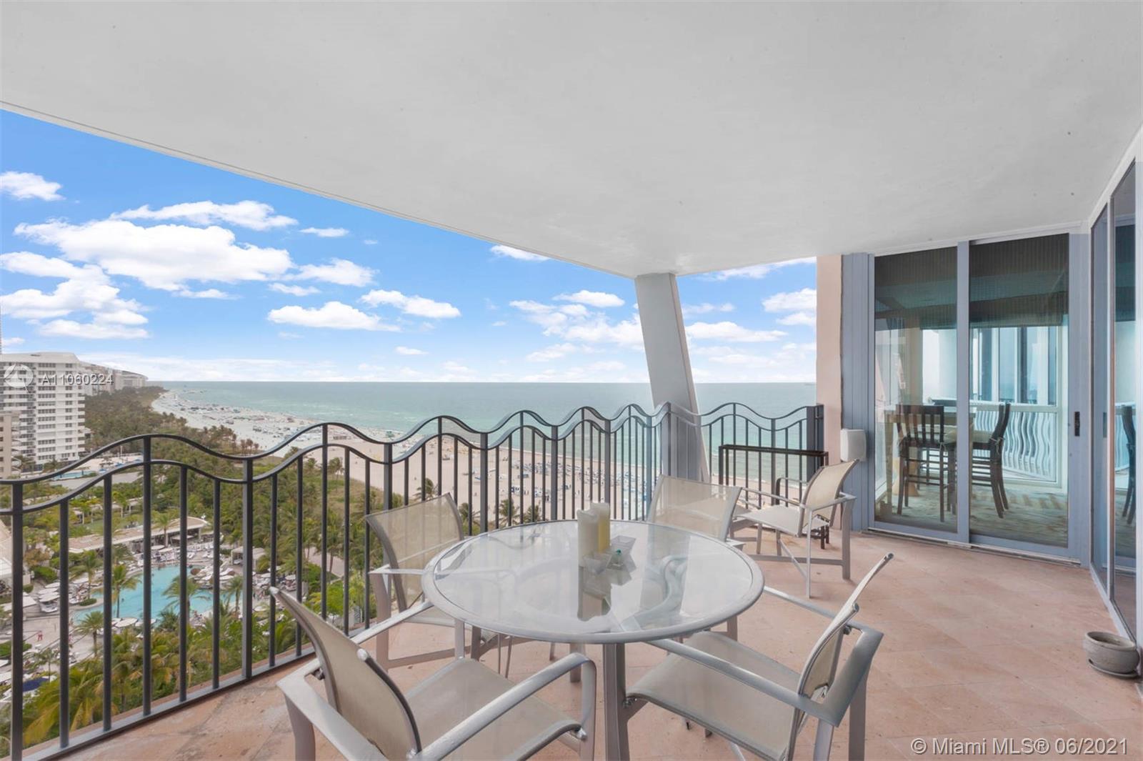 Stylish, direct-beachfront 3-bed/3.5-bath penthouse corner unit boasts panoramic views of Miami Beach and the ocean. Decorator-designed unit features custom lighting, electronic shades, built-in sound system, marble floors. Split-plan layout with two separate balconies for outdoor living facing north and east. Conveniences include multiple walk-in storage closets, dedicated laundry room with sink, 3 assigned parking spaces, and additional storage cage in garage. 1500 Ocean, designed by architect Michael Graves, is a boutique, full-service condominium offering: gym, sauna, steam room, pool and hot tub, dedicated security, valet, front desk, party room, beach service with chaise lounges and towels provided for residents. Steps away from the beach and many of the area’s best restaurants.