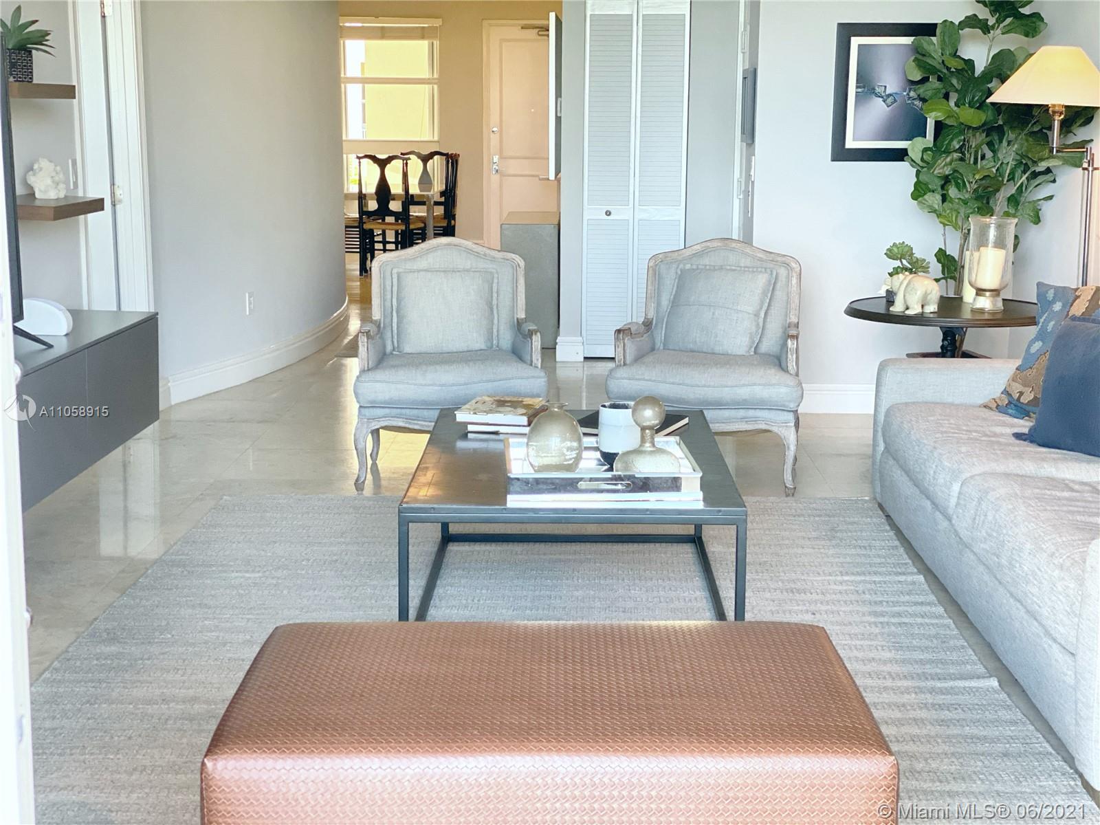 Beautiful and Bright 3 bedroom condo with 3 full baths, open kitchen, marbel floors, New appliances, balcony surrounded by palm trees and Tennis courts view. Enjoy all the resort style amenities this amazing condo has to offer- Tennis Center, basketball court, several pools, spa, incredible gym offering instructors/classes, newly updated beach club with two restaurants and full beach service.