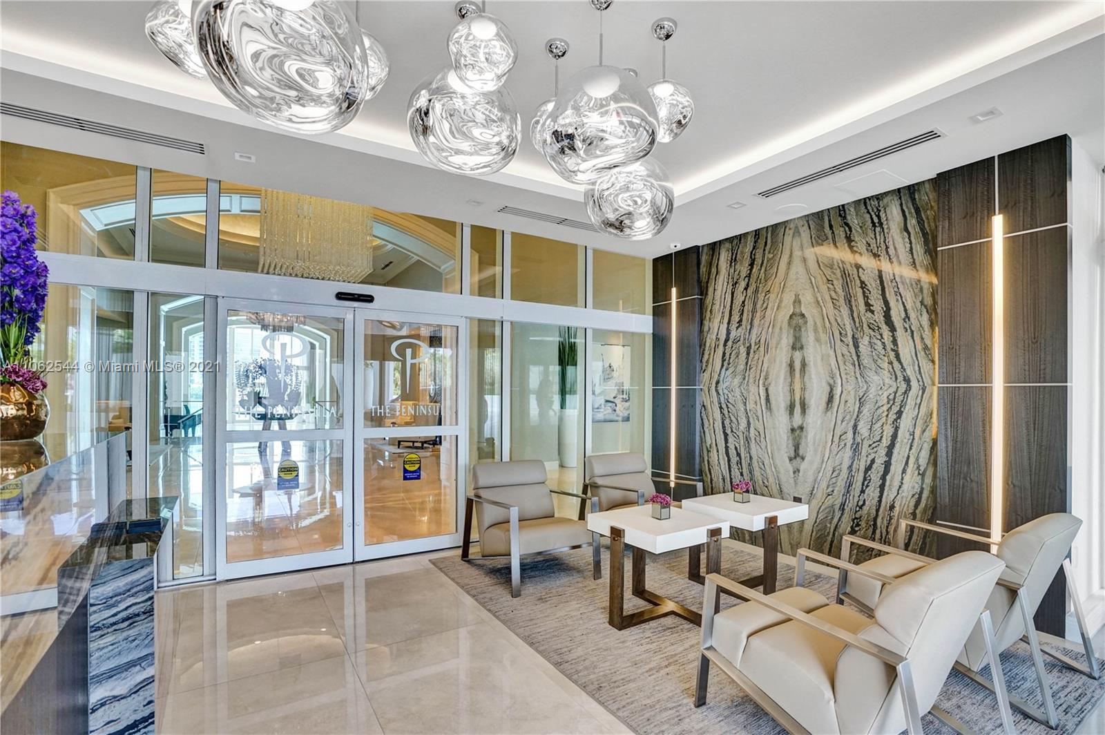 This European inspired Penthouse in the exclusive Peninsula I offers 4 bed 4 bath, 3,620 sqft plus 3 balconies overlooking breathtaking Ocean, Intracoastal and Bay views. The elegance of this luxury home offers pristine marble floors, hand painted ceilings by exclusive artists and craftsmen, chef’s style kitchen with top-of-the-line appliances & dual oven, custom-made closets and unique crystal chandeliers to light up your day. The master closet is a Dream Come True. Art pieces , designer bags and more for sale. Can be sold fully Furnished. THIS IS A MUST SEE!!2 assigned parking plus free parking for any additional car.