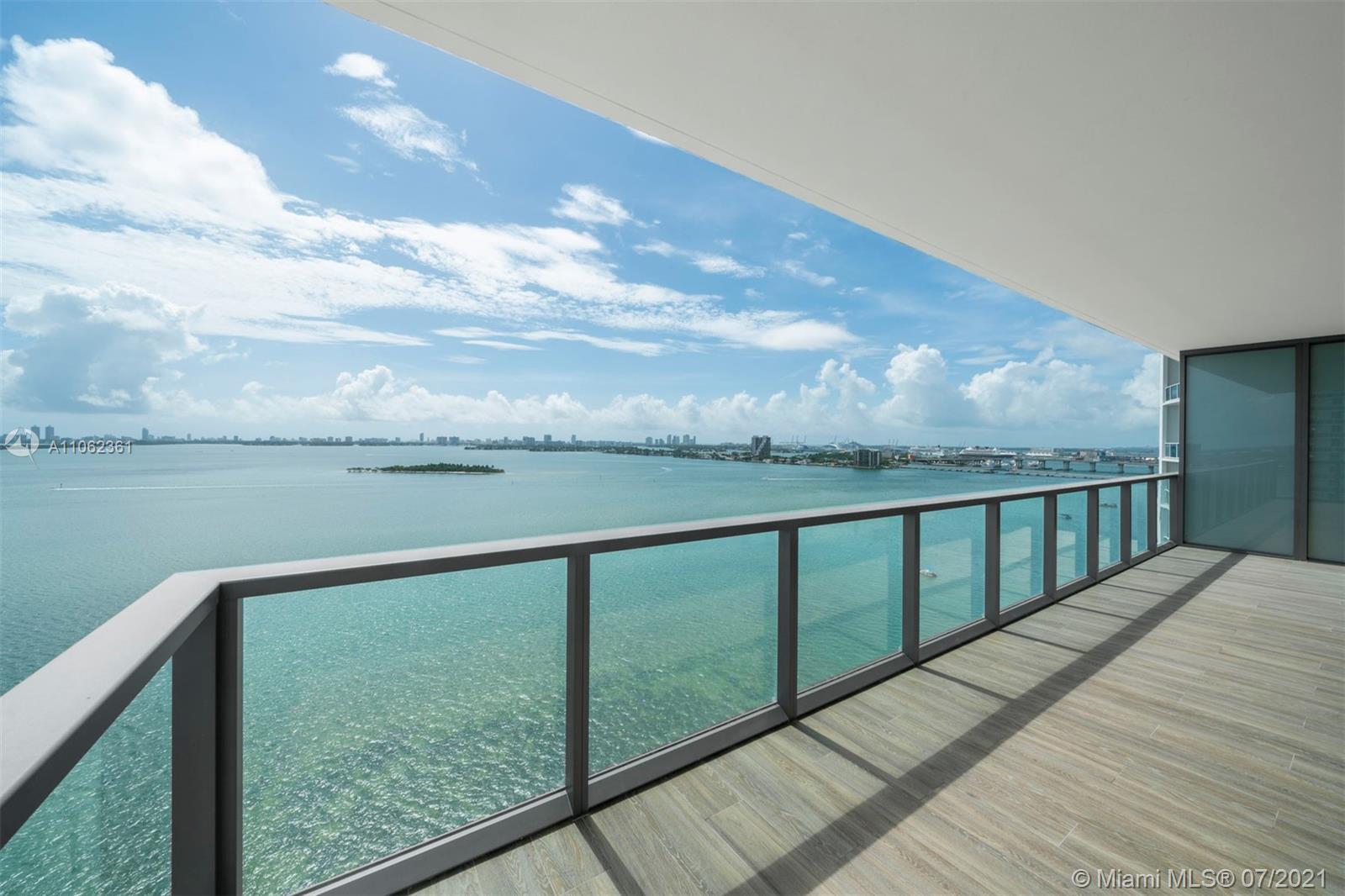 Edgewater’s most exclusive boutique development. 100 Residences with half and full floor flow-through units only! Direct open bayfront NE corner 3 BR + Den/Office with incredible views facing Miami Beach and city views of Edgewater and Wynwood. 10 ft. floor to ceiling glass windows, Wolf gas range and Subzero appliances, porcelain-wood flooring, & private elevator foyer. Lobby, 30th flr. owner’s Sky Lounge and residential common areas designed by renowned designer Jean-Louis Denoit. Other amenities include fitness center, spa, two pools, & five-star concierge services.