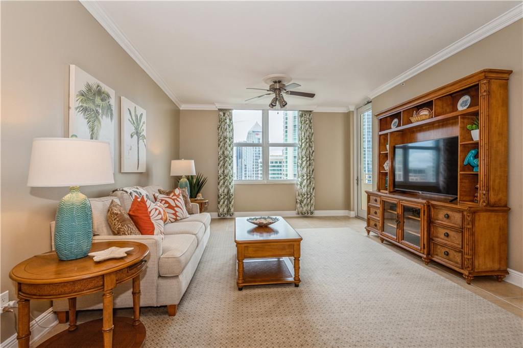 DIRECT RIVER FRONT 2BED/2BATH residence! Relax on your private balcony and watch the yachts go by in the heart of downtown Fort Lauderdale. This unit boasts tile floors w/ wide 5" baseboards & crown molding throughout. Spacious open concept floorplan w/ split bedroom layout is perfect for your lifestyle. Kitchen features stone counter/backsplash, pendant lighting, Italian shaker style cabinetry and all new stainless steel appliances. Bathroom countertops match same kitchen counters and outfitted w/ round metal sinks/finishes. Secondary bedroom also faces north directly on the river which can serve as a welcome guestroom or a spacious home office or nursery depending on your needs. Custom Closets. Tankless Water Heater. New A/C. Full Size Washer/Dryer Negotiable. Furniture Negotiable.