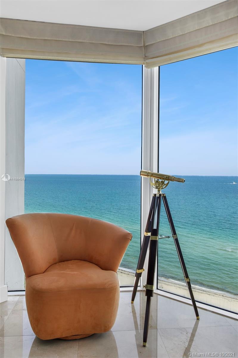 Unobstructed endless ocean views from this large 2 bedrooms/2 full bath plus den residence. An abundance of natural light with floor-to-ceiling windows and balcony overlook the ocean. Large suite with spacious walk-in closet. The main bathroom with separate shower & Jacuzzi. Beautiful marble floors throughout, double door entry and elegant lighting fixtures. Unit is furnished - TVs not included. 2 storage cages included. The Blue Diamond offers exceptional amenities, and an extraordinary location.