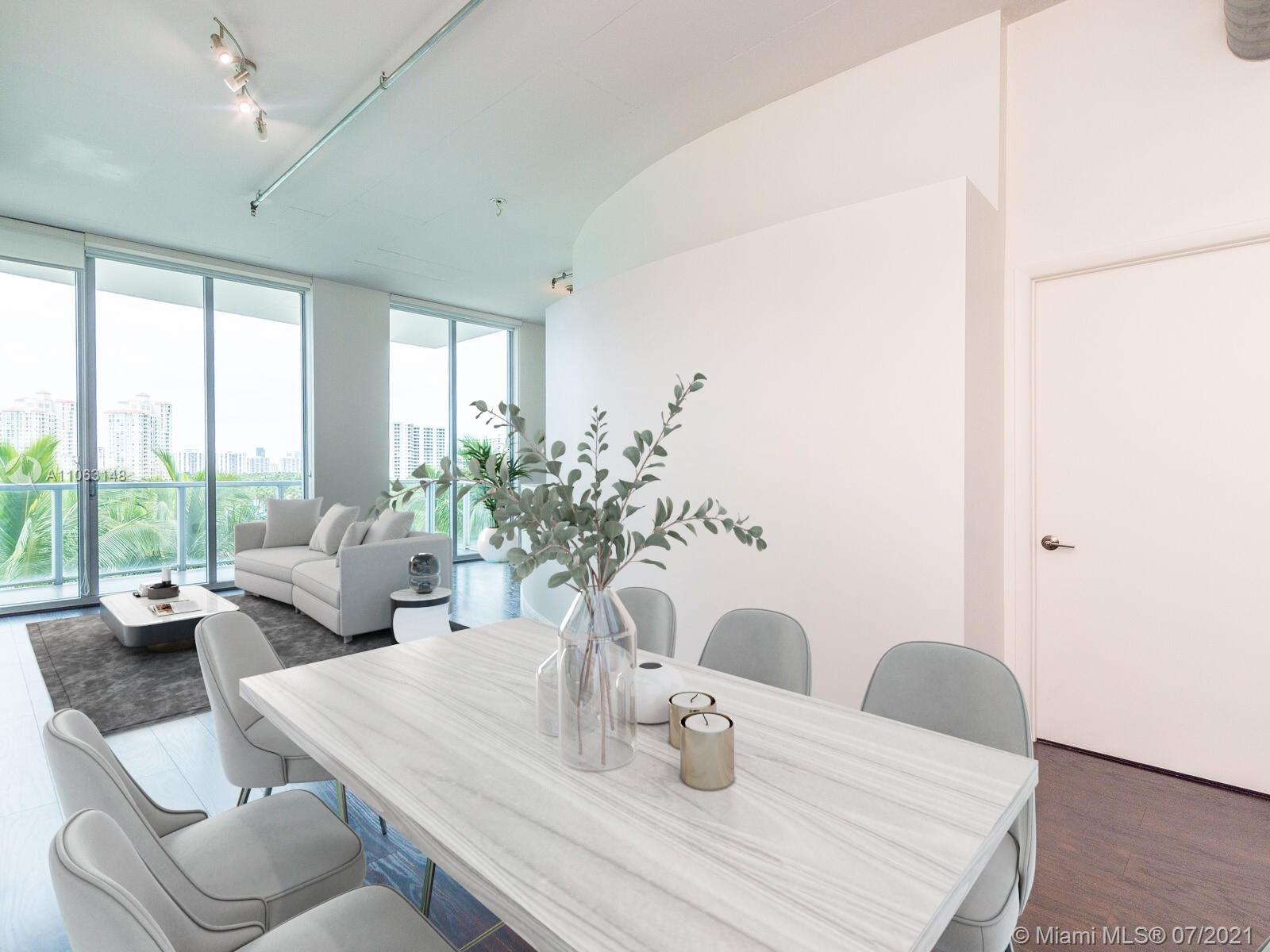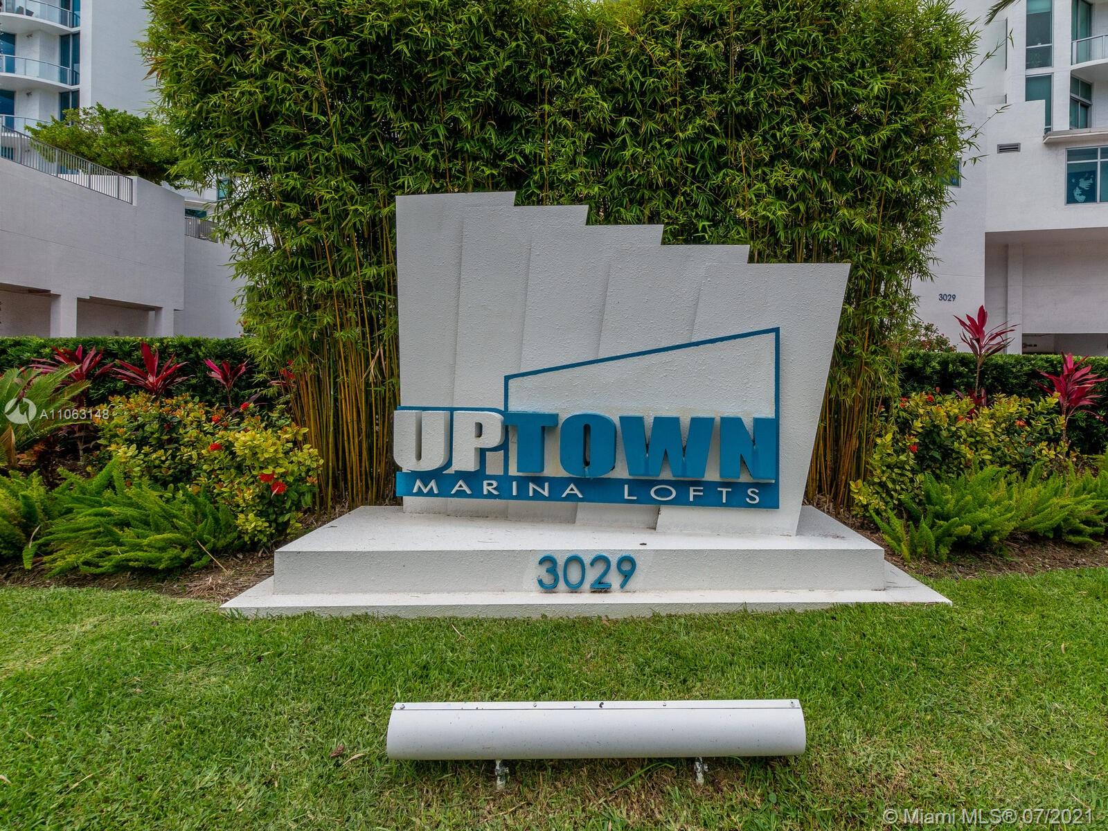Great Aventura Location. Uptown Marina Lofts it's a modern building with a unique design, that is situated in a secluded tree lined street. This property is offered with 2 assigned parking spaces. The property faces North, overlooking the pool area, marina and city skyline. The High ceilings provide a sense of amplitude and allows the natural light to enter every room. Enjoy seating on either one of the two balconies; one faces North and the second one South. Among the interior features are laminate floors throughout, great kitchen with Kitchen Aid appliances, two bedrooms plus a Den and two full bathrooms. There is a brand new and large washer and dryer. Only four units on this floor. Amenities: A state of the art gym, pool, marina, spa, conference room.
