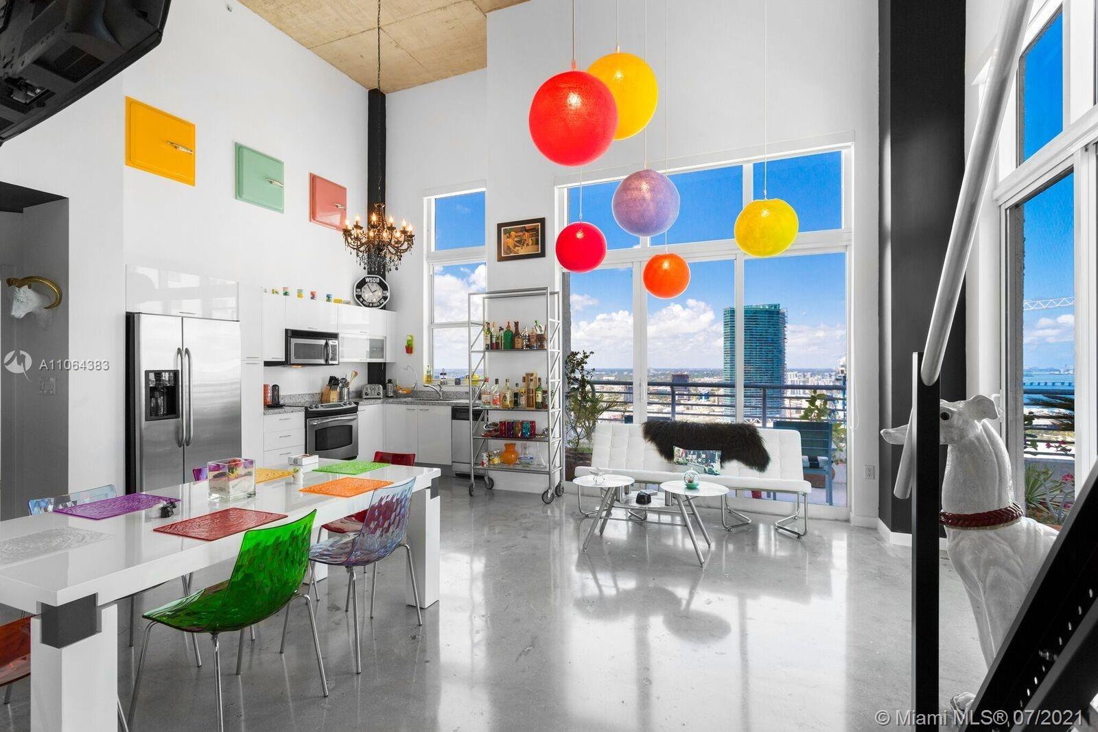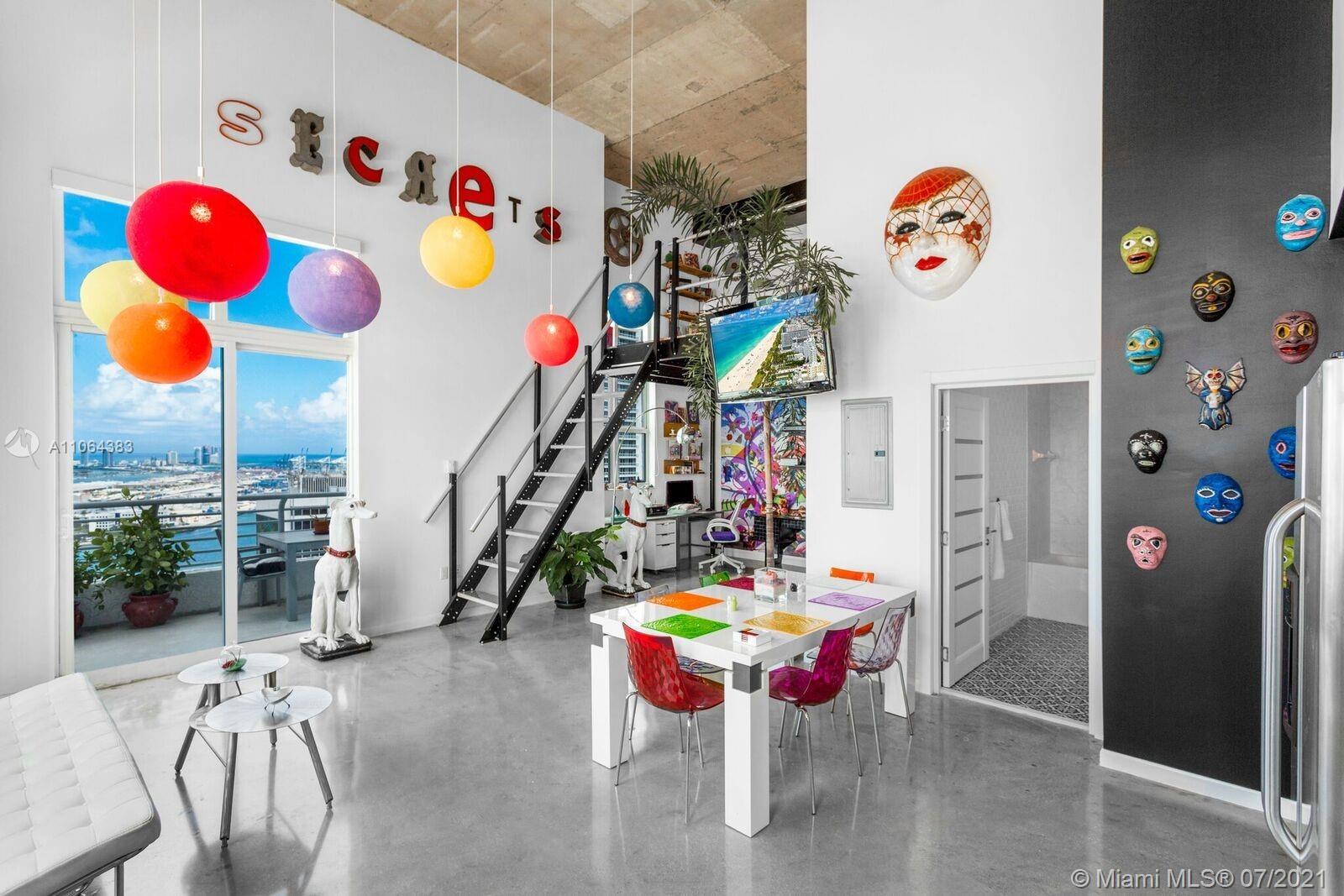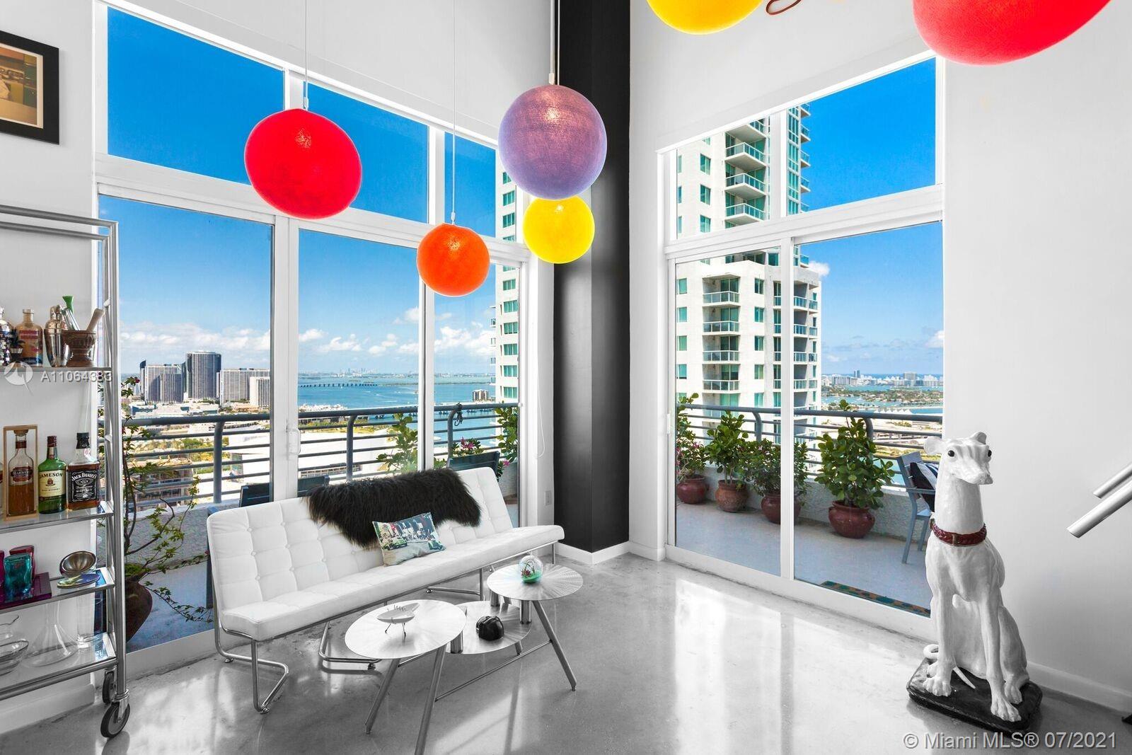 Spectacular views from this Lower PH 3501 Loft II unit- beautifully remodeled & sold FULLY furnished w/20 ft. ceilings, NE corner w/270 degree gorgeous bay & city views, deep extended terraces. Floor to ceiling impact windows w/black out blinds, Nest smart thermostat, European cabinetry, granite countertops, Stainless Steel appliances, glass backsplash, renovated bathrms with LED lighting, polished& sealed concrete flooring throughout. Extra Mezzanine floor adds a bedrm upstairs w/ bay views from the bed! Top of the line amenities: Rooftop Pool/Spa/Sauna/Gym on 36 floor w/360 degree views, Club rm with billiard and WiFi, additional lap pool at ground level, 24/7 Front desk security, onsite mgmt. Parking garage. Metro mover steps away, heart of dwntwn!**UNIT CAN BE SEEN COMMENCING 7/21/21**