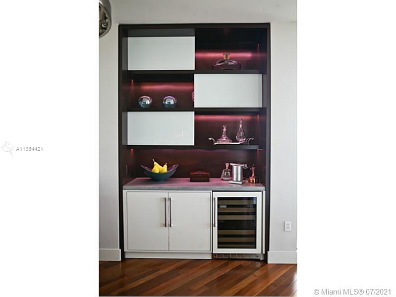 Immaculate 3/3/1 converted into a 2/3/1 to add a private dining experience that can be utilized as a 3rd bedroom if needed. Located on the best line in 900 Biscayne w/ unobstructed Biscayne Bay, Sobe Skyline & City views. Unit features spectacular upgrades including Brazilian Teak Hardwood floors, custom closets, great sized pantry & laundry cabinetry. Custom built-in bar & office desk with LED lighting, wine cooler & polished concrete countertop. Laminated Carrera marble kitchen countertop to protect from damage. Roller shades throughout as well as Blackouts in each of the bedrooms. This unit also comes equipped with its own Private Elevator & Foyer area upon entering. Enjoy top of the line gym, spa, free spinning classes, private Theatre, resident lounge w Wifi, & children's play area!
