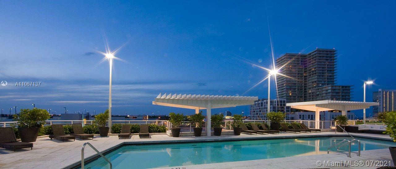 This 1 Bed + 1 Bath Condo features a generous private balcony, floor-to-ceiling impact-resistant glass windows, an open layout, Italian kitchen with stainless steel energy efficient appliances, custom wood cabinetry and stone counter tops, ten-foot high exposed concrete ceilings, ceramic flooring throughout, modern fixtures, spacious walk-in closet, pre-wired for electric, cable & high-speed internet, and full sized washer/dryer. Amenities include a modern lobby, a rooftop swimming pool with sweeping city views and gathering areas that include BBQ grills and mini-golf, a state of the art fitness center, a covered gated parking, 24hr concierge/security, and key card access controlled elevators. Offers a pet-friendly environment and ground level retail and restaurants. No Rental Restrictions