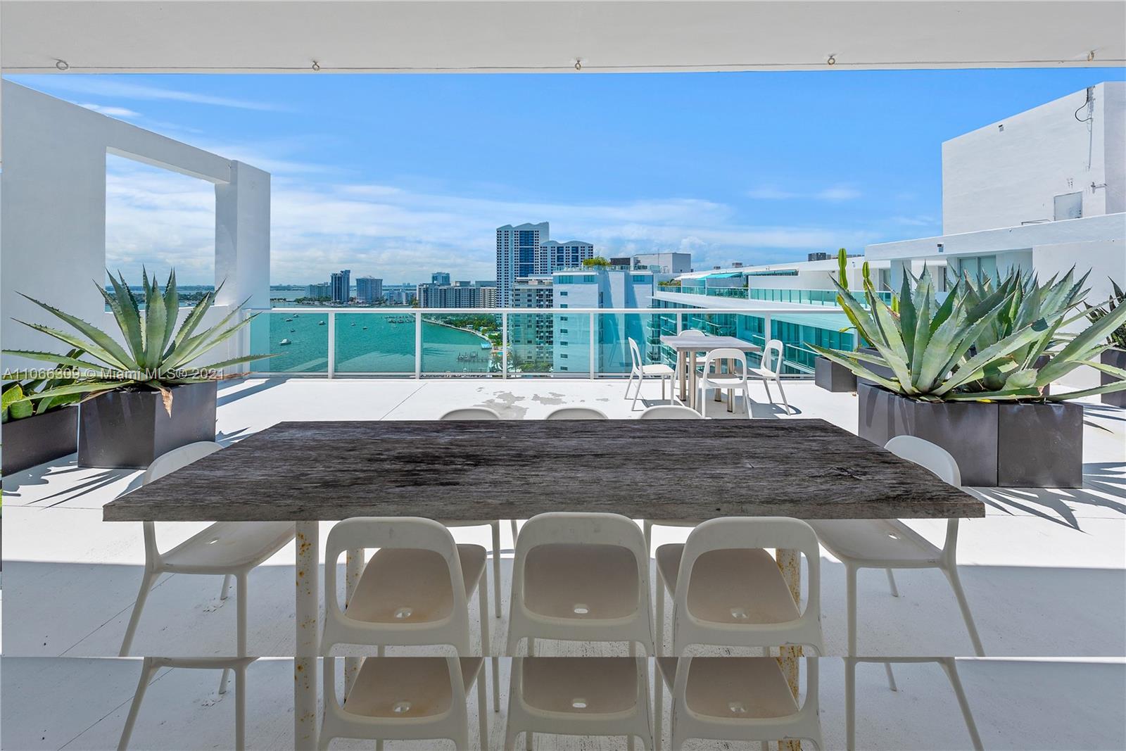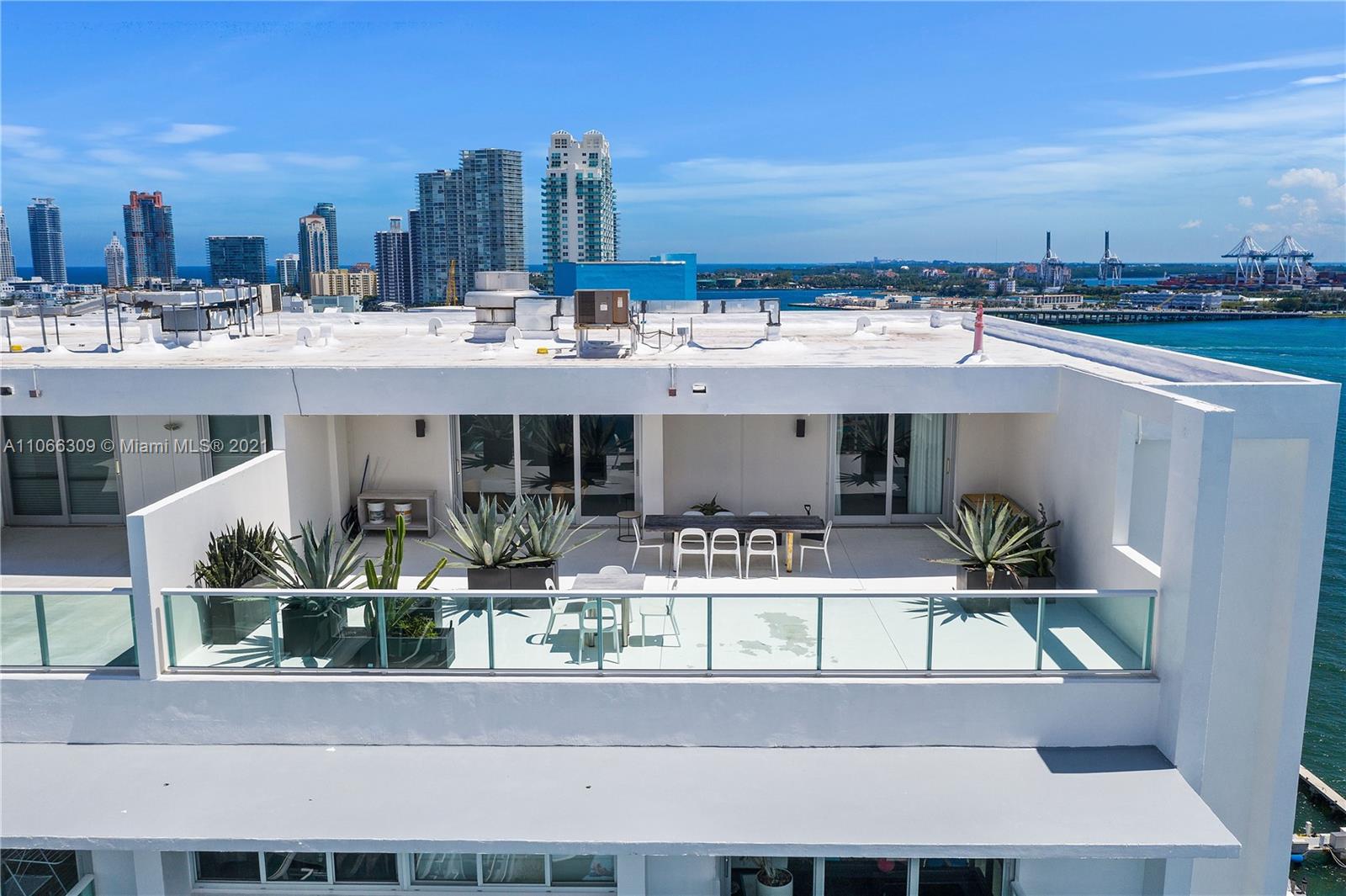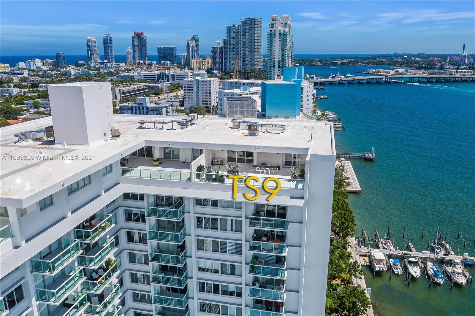 Fabulous Penthouse Tower Suite, TS9 is a unique waterfront residence with an 1100 sf private terrace. Enjoy panoramic NW, Biscayne Bay and Miami Skyline views. Additional outdoor space affords SW views. This spacious, 1,325 sf contemporary 1bd/1.5ba is sleeky designed. Wonderful for entertaining. Or, just relaxing outdoors. Mirador is in a great South Beach location and offers 5,000 sf gym, convenience store, and beautiful pool area.