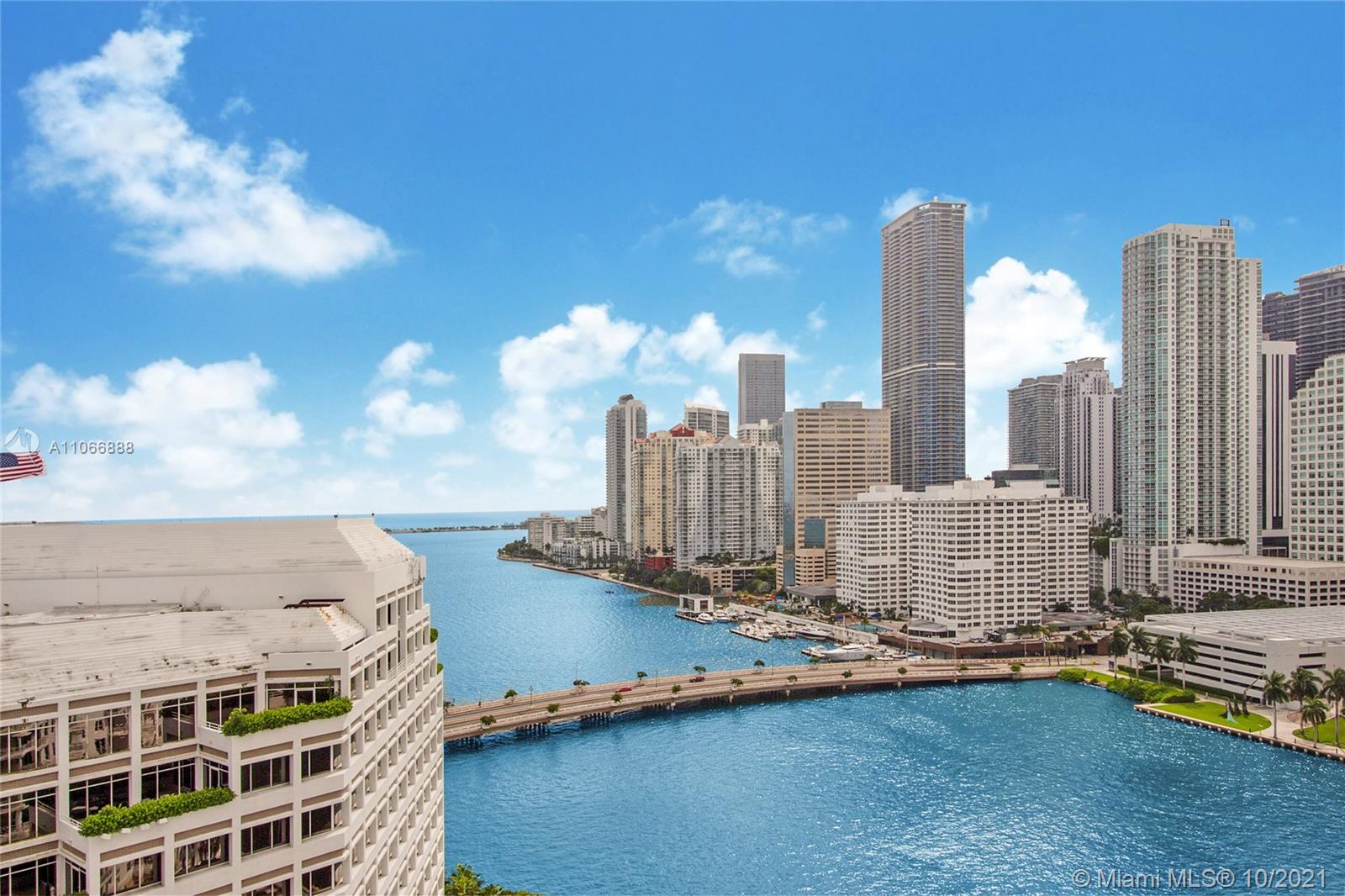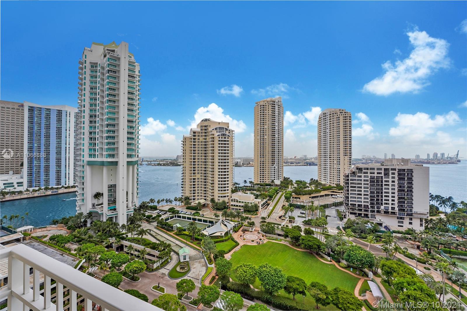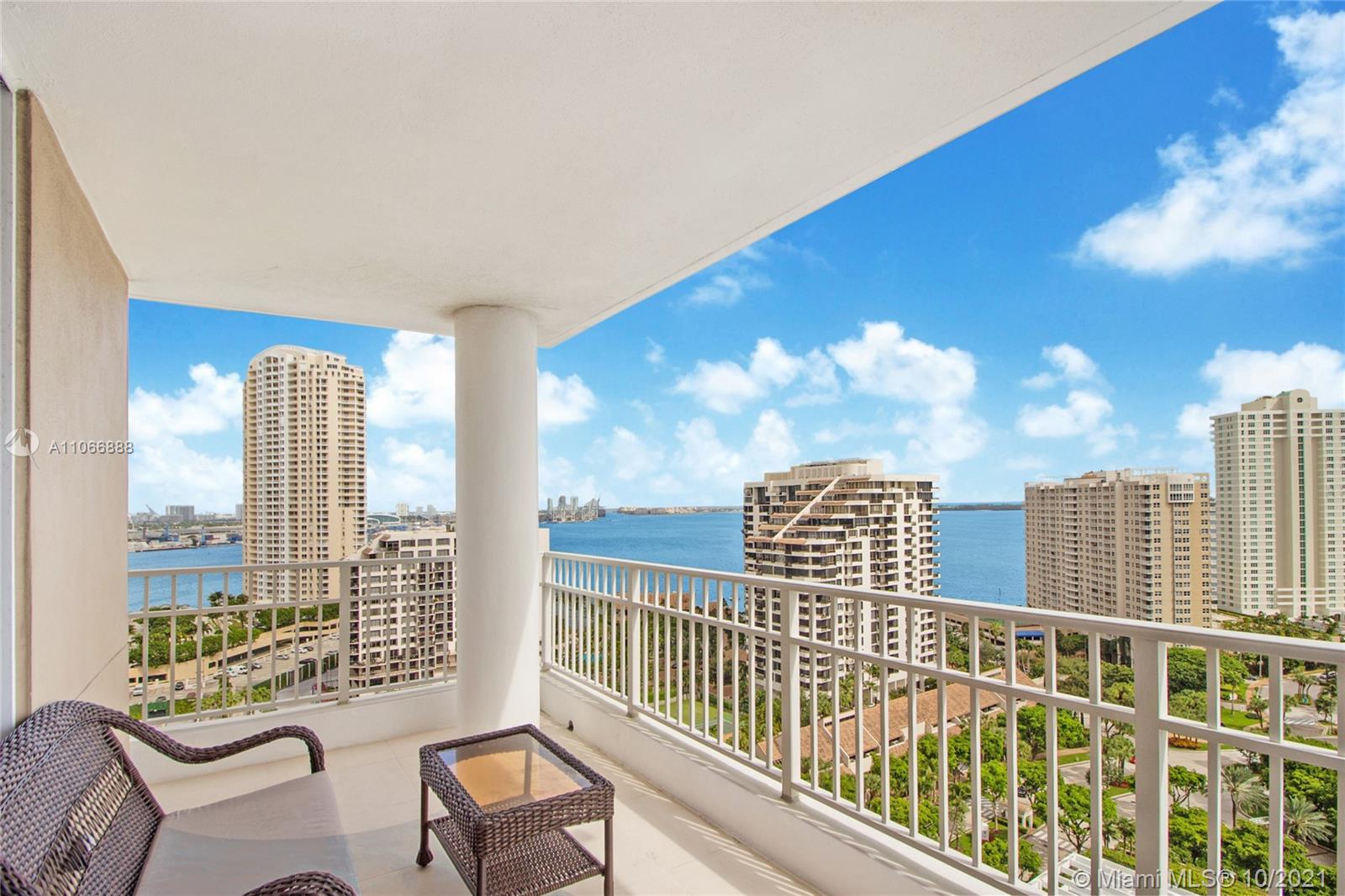 Spectacular views of ocean, bay, Fisher Island, the Miami skyline and much more, from this extremely well located corner unit on the 21st floor of the Courvoisier Courts, on one the best lines, of the building; and in the center of beautiful Brickell Key. Live the lifestyle of a petit island close to all the beauty Miami has to offer. The unit has a well sought split floor plan for additional privacy; 2 bedroom suites, half bath and ample balcony with open views from every room; and storage area. This fantastic apartment offers a very strong value proposition. Unit is leased until September 2,2021. Please use show assist for showings, 24 hours notice. .