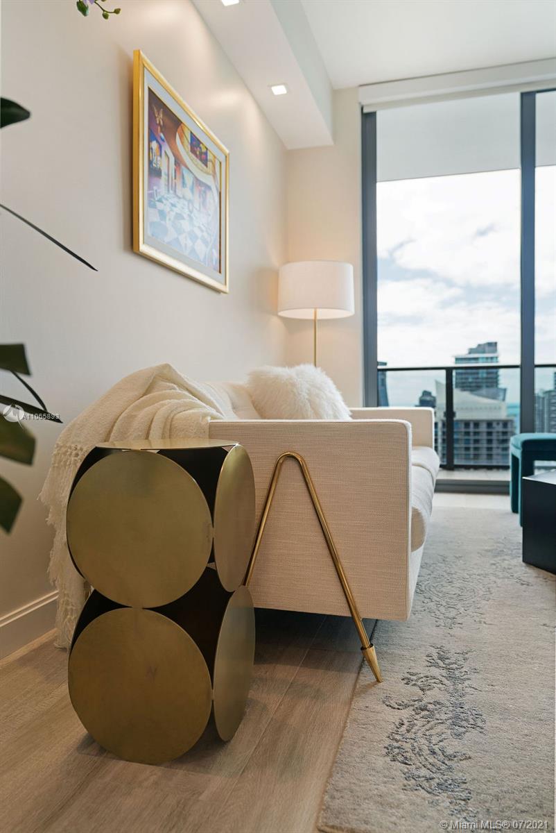 Welcome to the absolute most luxurious 1bed + den(converted to 2nd bedroom) fully furnished and turnkey in all of Brickell with custom designer finishes ready to occupy. Features include: Italian flooring throughout, custom furniture, high end appliances, panel in bedroom, glass slider to enclose den area into a second bedroom, ultra luxury high end open kitchen, large terrace with partial water and skyscraper views and much more. Have access to the amazing amenities of Brickell Heights include roof top pool, fantastic gym, stem room, sauna and more. Located right in the heart of Mary Brickell Village and steps to all of the hot spot restaurants and Brickell City Centre.