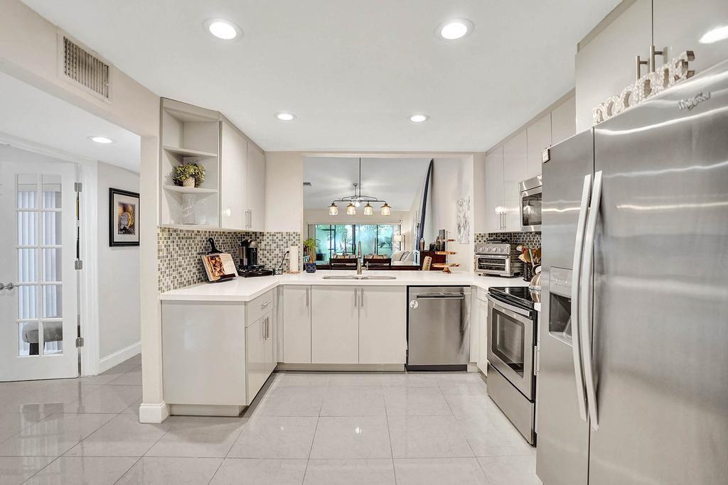 Run don't walk to this spectacular, completely remodeled Villa with a very open main floorplan with vaulted ceilings! Kitchen features beautiful light quartz countertops with newer stainless steel appliances and eat in kitchen space. Wide pass thru with counter opens to dining room with more counter seating available. Gorgeous totally remodeled bathrooms with high end finishes and frameless shower doors. Spacious master closet has brand new built-ins. The patio & carport are also beautifully tiled. Newer A/C and water heater. Convenient location, close to shopping, restaurants and major highways. Highly rated Weston schools nearby. Bonaventure town center club membership required $285.per year includes Nice pool, tennis, spinning room etc. Min. 10% down payment required by condo assoc.