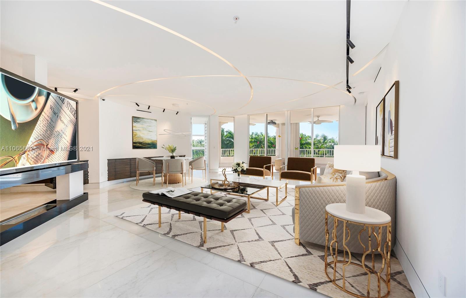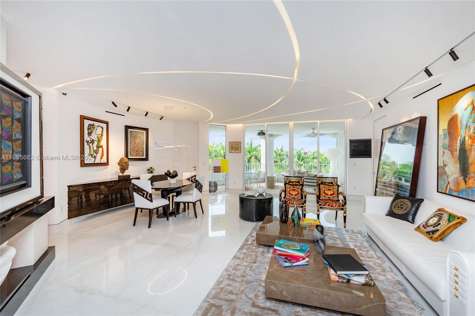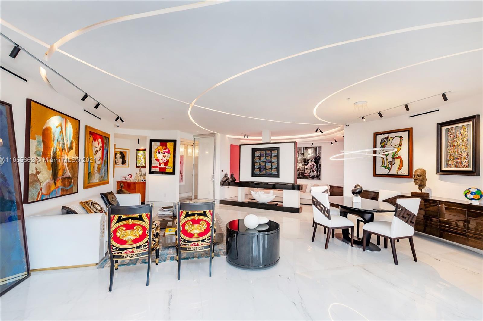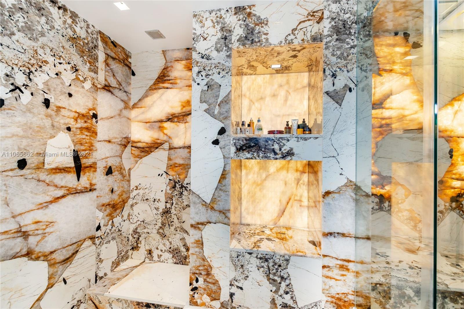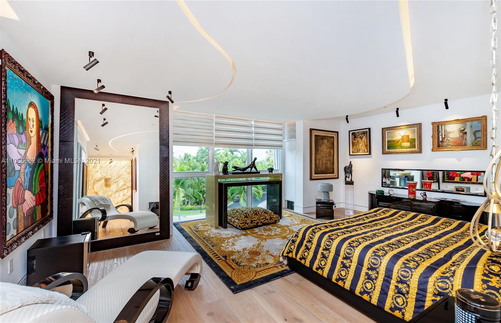 Masterpiece with pure luxury; caring all details in this stunning Versace-style property. All unique and sleek remodeled with high-end materials hand-chosen in Italy and Europe. Exquisite walls of onyx with stunning internal illumination, giving you unparalleled elegance and excellence in this impressive property. Gorgeous flooring, and wood details add distinctive touches at every turn. The kitchen features Miele appliances, custom cabinetry. A private elevator leads you into your exclusive foyer, leading to a modern open space with a breathtaking water view. Unique custom-built family/media area with a mobile TV, offering great entertaining and fantastic family time. A distinctive retractible Tv-System coming from the roof optimizes all space in the cozy master bedroom. You must see it.