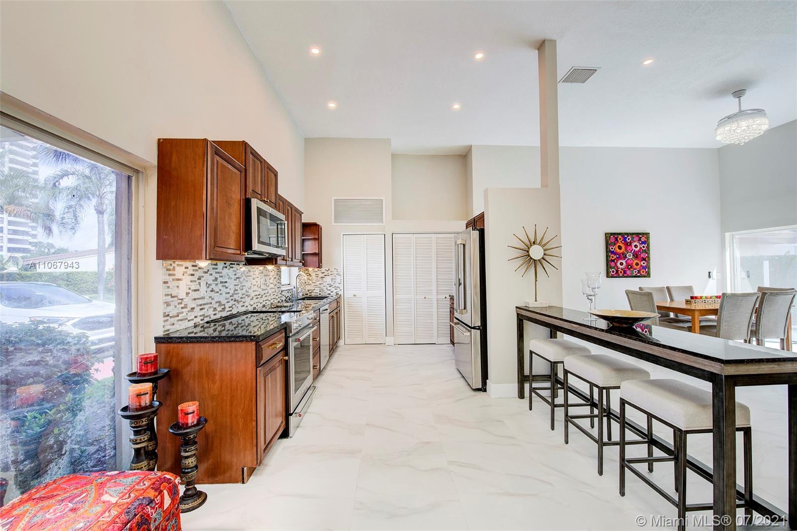 Fully renovated 3 bedroom 2 bathroom with open concept floor plan. 24x24 porcelain tiles, 14ft ceiling, new impact windows, new AC, new water heater, high-end kitchen aid appliances, new washer and dryer, California closets, huge master suite with walk-in closet, recessed lighting and designer ceiling fans. Perfectly located in three Islands, Harbour wood villas is a boating community with pool, Marina, tennis and racquetball courts. walking distance to Hallandale beach, Gulf Stream, shopping and dining is minutes from the Aventura Mall. HOA includes, Building exteriors, including the roof, Cable, Internet, Water, 2 car spaces, Lawn and all amenities. Boat Slip available.. YOU MUST SEE !!!