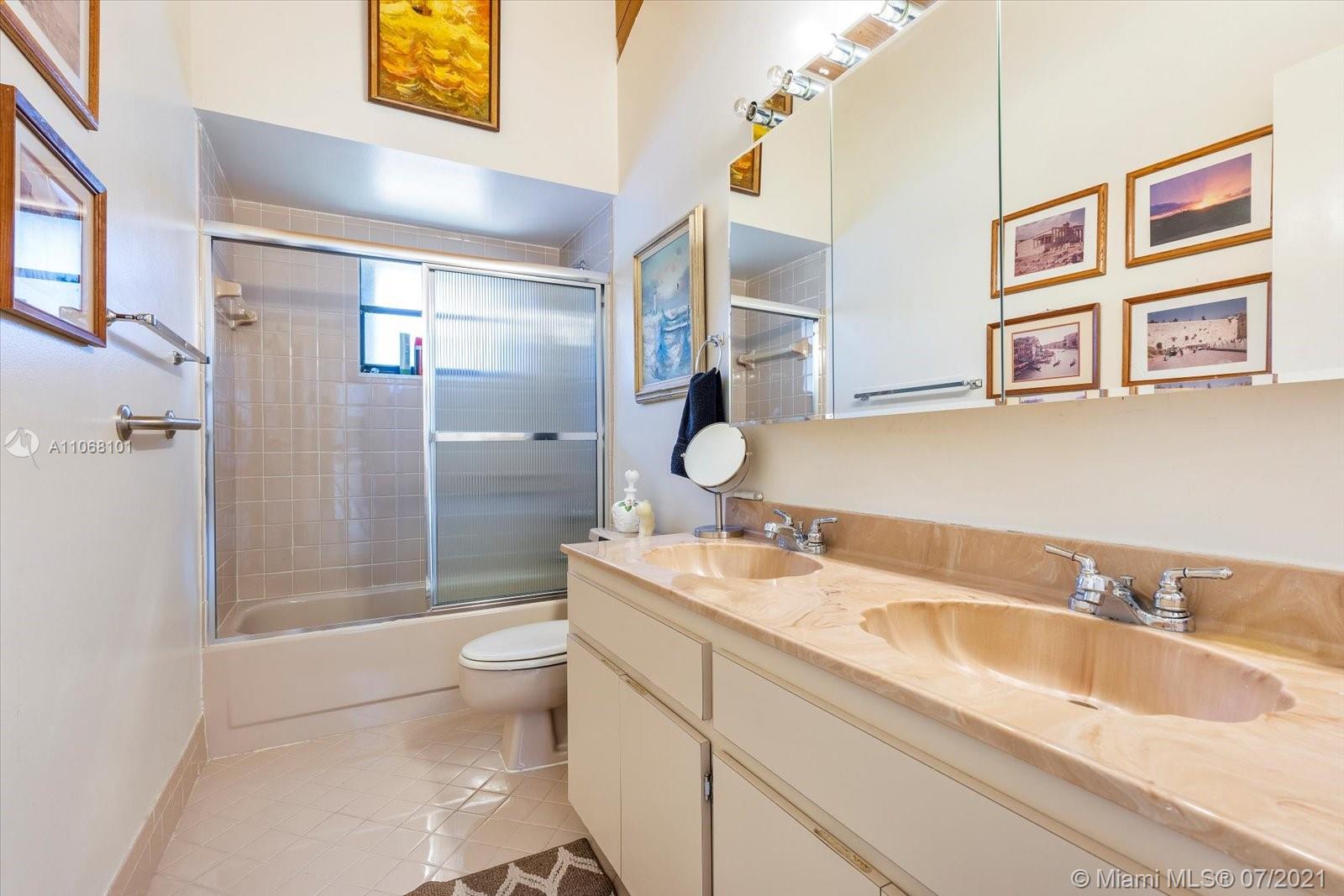 ONE STORY VILLA SEASONED WITH LOVE. Features 3 bedrooms, 2 baths, eating kitchen, split floor plan, spacious master suite, walk-in closet, and large bathroom with shower and tub, private fenced-backyard, high ceilings , two skylights filling the space with SUNSHINE & CHARM. Two parking spaces. ALL THE COMFORTS OF HOME when you own this easy to care VILLA! THE HARBOURWOOD VILLAS AT THREE ISLANDS offers a plethora of amenities! Pool, sauna tennis courts, racquetball, boardwalk, & marina. LOW HOA fees includes, basic cable, water, and exterior insurance. LOCATION, LOCATION, LOCATION near the beach, shopping centers, restaurants, Gulfstream Park, Aventura Mall, and Joseph Scavo Park with playgrounds, and dog Parks. AN OPEN SPACE FOR YOU TO ADD THE UPDATES WITH YOUR OWN VISION AND CREATIVITY!