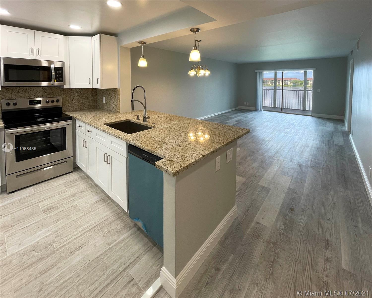 Century Village's finest, Ivanhoe "D" for desirable waterfront unit. Featuring a new open kitchen with granite tops and back splash, all new appliances, new washer/dryer, new bathrooms, new ceramic and vinyl floors throughout, new LED lighting in the kitchen and bathrooms, new water heater, new A/C and new electrical box. This was a permitted project! The community features an 1100 seat theater, indoor/outdoor pool, pool tables, tennis, bus service around the community and off the property and 18 hole golf course. Too many amenities to mention. If you're looking an active adult life don't look any further.