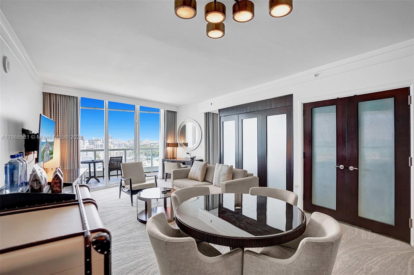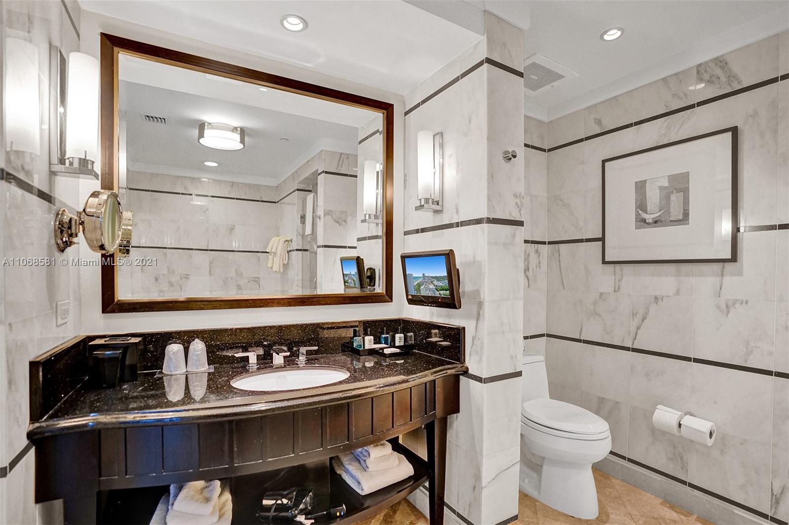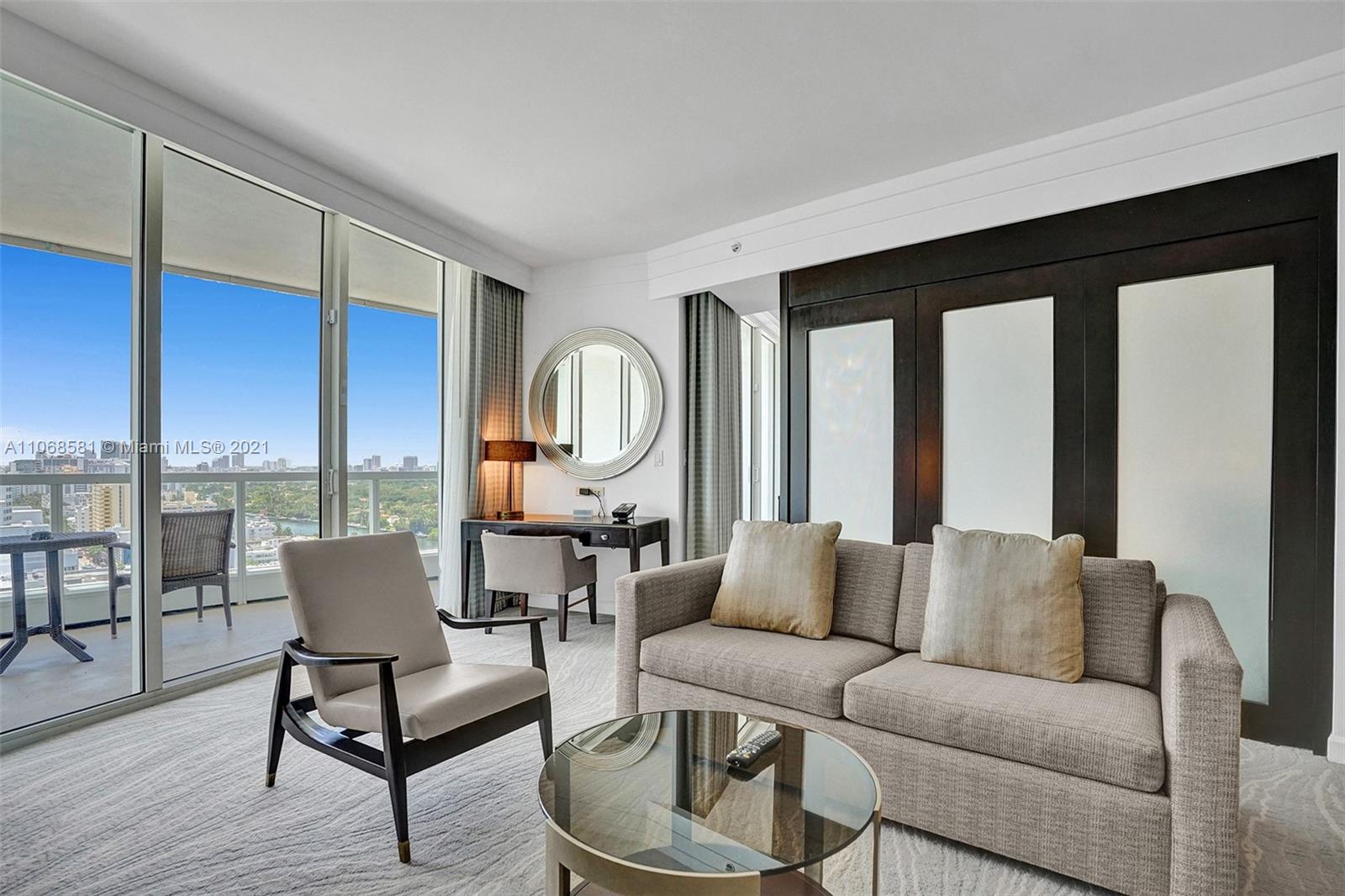 Unique refurbished 802 square foot Jr Suite at The Fontainebleau III with beautiful South facing views of Ocean and city. Enjoy full service, vacation-style living in this fully furnished turnkey unit with 2 double beds, sleeper sofa (sleeps up to 6), marble bathroom & more. Enroll in hotel rental program & receive income while away! The Fontainebleau Resort offers luxury amenities on 22 oceanfront acres including award-winning restaurants, LIV night club, Lapis spa & state-of-the-art fitness center. Maintenance includes: AC, local calls, electricity, valet + daily free breakfast in the owners lounge.