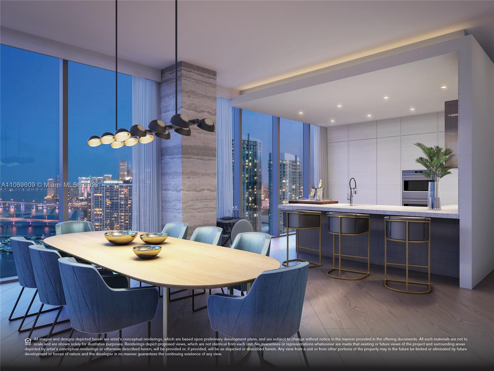 Breathtaking panoramic views from Biscayne Bay, Miami Beach’s skyline, the Atlantic Ocean, downtown Miami to Wynwood, Midtown and the Design District from this gorgeous 3 bed/4.5 bath+ den corner flow through residence in Elysee Miami, Edgewater’s premier resort styled luxury boutique building. Located at the edge of Biscayne Bay at the nexus of world class art, design and culture. Enjoy the everyday experience of white glove butler service, high speed private elevator, airy open interior, floor to ceiling windows, private oversized sunrise and sunset balconies, Sub-Zero and Wolf appliances including a gas cooktop, Waterworks bath fixtures and more. This unit is the only unit available in the 01 line with floors installed.