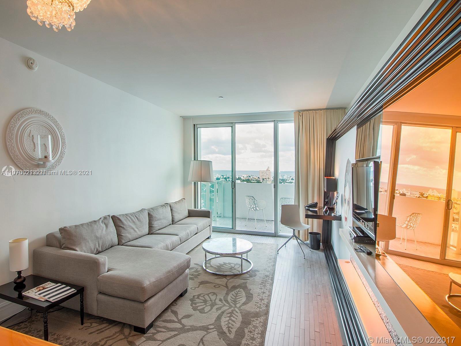 GORGEOUS CORNER PH SUITE WITH BALCONY AND STUNNING PARTIAL BAY AND OCEAN VIEWS. This fully furnished 1 bedroom, 1 bathroom suite is equipped for Airbnb short term rentals and has 1 king size bed in the bedroom as well as 2 murphy beds in the living area. The trendy condo hotel just had a $ 20 mill renovation which is fully paid off. Owners and guests enjoy all amenities this 5 * hotel has to offer, i.e. 24 bay view gym, full service spa, owners have free valet parking, concierge services, indoor- and outdoor bars and restaurants, including bay beach club, pool service, paddle boards, bikes and so much more