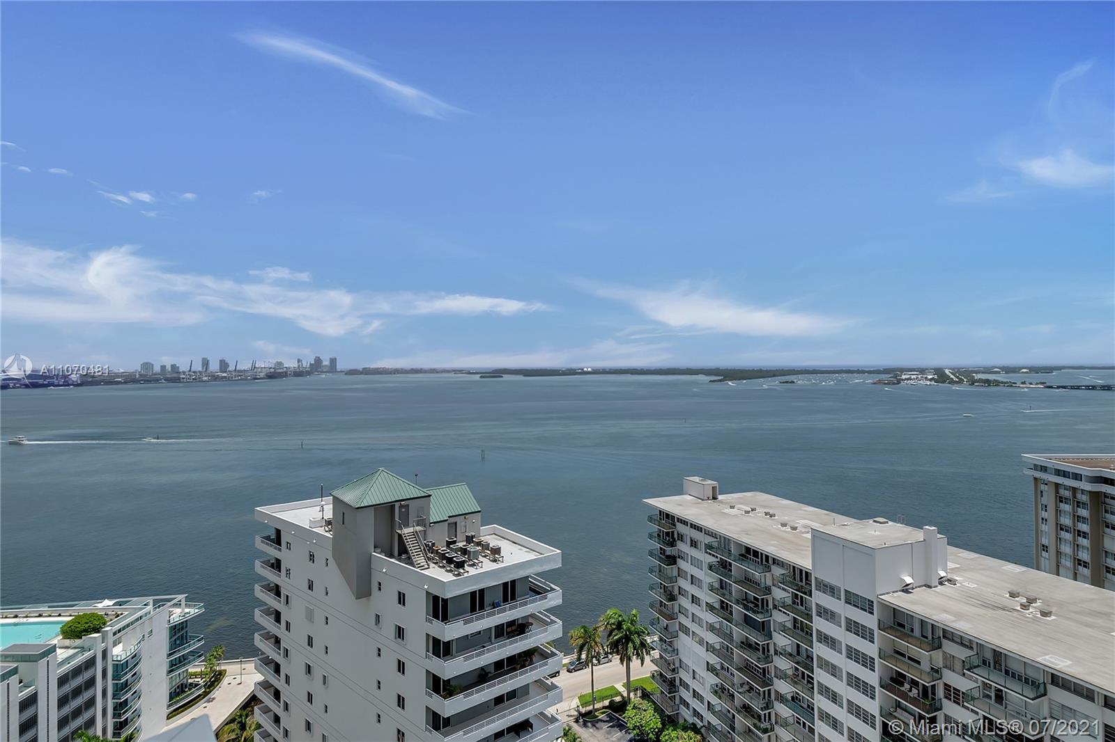A monument to the endless pleasure of sunrises, sea, and city a stunning 1/1 corner unit in a boutique building at The Emerald in Brickell the 07 line is the best 1BD line in the building. 180 degrees of endless unobstructed views of PortMiami, South Beach, Fisher Island with bright turquoise waters & powder blue skies. Unit completely remodeled wood floors, glass doors, gorgeous kitchen, Somfy window treatments, oversized balcony view, Venetian plaster wall treatments, Toto automatic smart toilet. Emerald amenities 24/7 concierge, water view rooftop pool, valet parking, business center, conference room, gym overlooking Biscayne bay & more. Urban Walking distance to restaurants, shops bars and more.