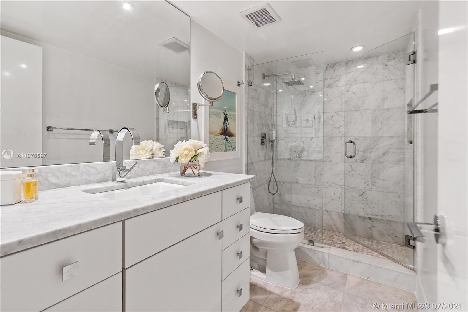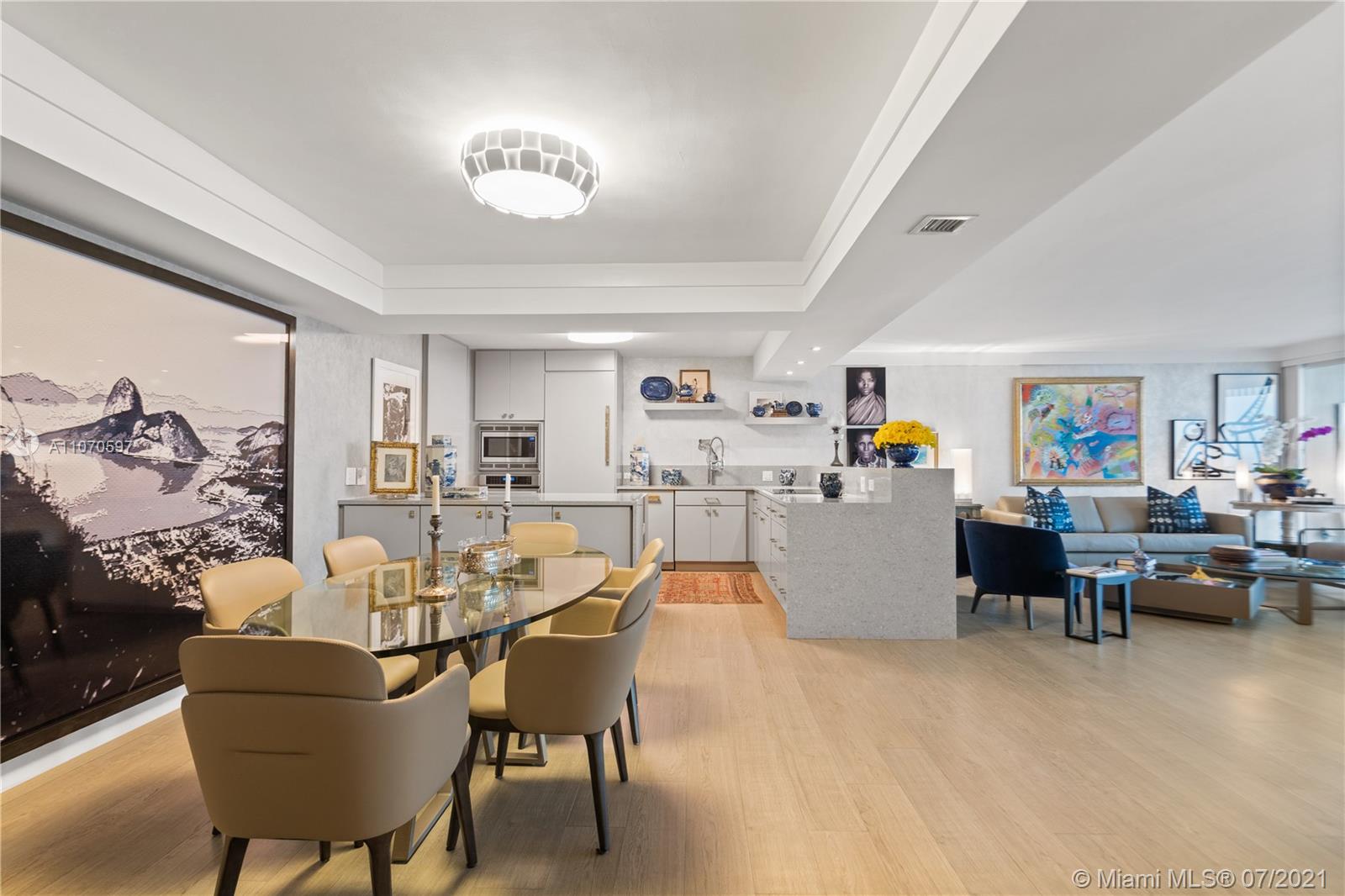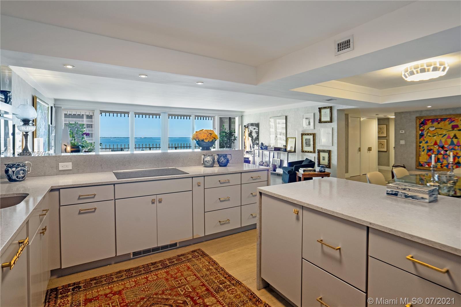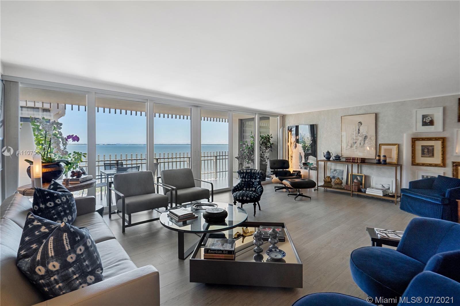 Meticulously renovated waterfront condo in the exclusive community of Grove Isle. No expenses spared on this flawless condo, featuring 2 beds and 2 full baths under 1,882 SF of living space with large hurricane resistant windows and doors to maximize natural light and bay views. New custom designed kitchen with Thermador appliances, new bathrooms including master bathroom with walk-in shower and separate floating tub, double walk-in closets, huge pantry, storage room and large balcony with panoramic water views. Grove Isle is a private and gated community with soon to come newly renovated 8 Har-Tru tennis courts, 3 swimming pools, private beach, marina and social club. It is located minutes away from Downtown Coconut Grove, Brickell and Key Biscayne. This unit is a must see. Move in ready!