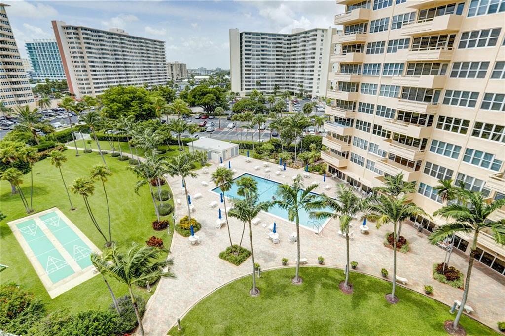Beautiful corner unit across street from the beach. This modern kitchen boasts granite countertops, a soffit ceiling, KitchenAid self cleaning stove with range top and KitchenAid dishwasher. Open kitchen allows spacious views through dining and living room. Huge balcony with new hurricane glass looks over the heated pool, bocce ball court and well manicured tropical landscaping. Nicely tiled floors laid on the diagonal through out this unit create an easy flow from room to room. 2 updated bathrooms. This 55+ community requires min 700 credit score and minimum $65,184 proof of income. Building sits on 5 sprawling acres, next to numerous restaurants, grocery stores, coffee shops, retail shopping and close to golf, tennis, entertainment, boating. Live the good life at Coral Ridge Towers East