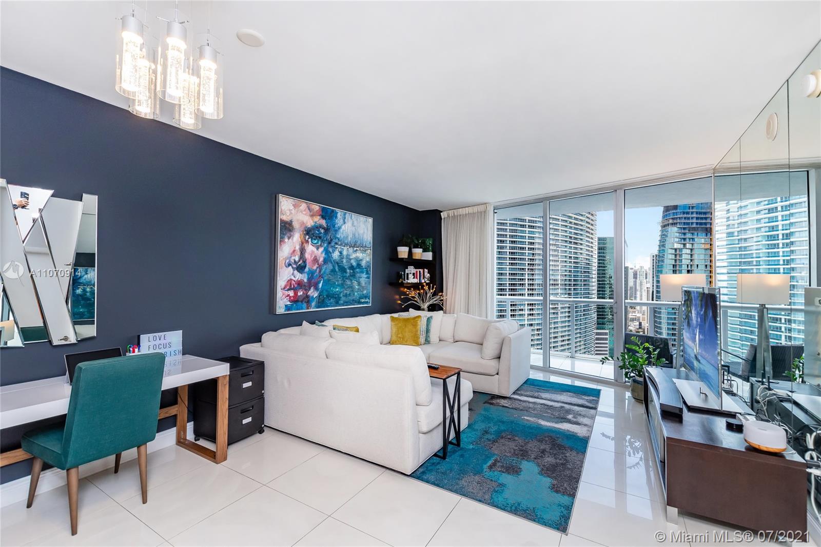 This Luxury unit at the exclusive ICON Brickell features floor-to-ceiling high impact glass doors providing a bright and spectacular Miami River view!! Here you discover a place to enjoy the sunset and ocean breeze, which you can enjoy from the nice balcony or from inside the apartment. Porcelain and wood floors, built-in wood closet, Large bathroom, Washer/dryer, Open Kitchen with Italian cabinetry, sub-zero and wolf appliances. Fully Furnished and ready to move in. All within walking distance to Brickell's finest restaurants and shops. A five Star Amenities building with Grand just remodeled rooftop pool, Fitness Centers, Interactive Concierge services, Valet. One parking space, 24 hours Security. This beauty won't last!!!!