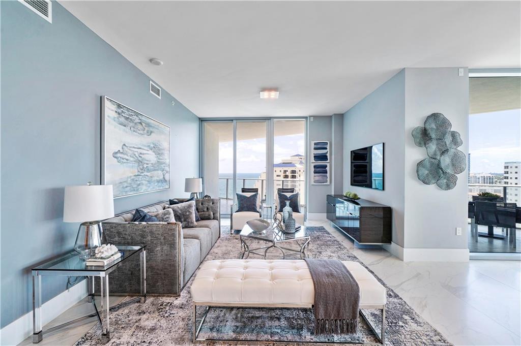 Gorgeous City of Ft. Lauderdale views from the moment you enter this luxurious CORNER residence. Enjoy breathtaking sunset views from the great room, kitchen, & bedrooms or beautiful SE ocean views from the master bedroom & 700+ sq. ft. terrace. This 3 bed, 3.5 bath is equipped w/an open kitchen design w/two-tone countertop island including all top-of-the-line appliances (Sub-Zero & Wolf) as well as floor-to-ceiling glass windows, recessed lighting & automatic shades throughout. Live in the Iconic Paramount, a boutique and newer construction (above ALL other building codes) high rise in the heart of Fort Lauderdale Beach and steps away from Ocean & Entertainment offering world class amenities Can be sold Turn-key with custom furnishings!