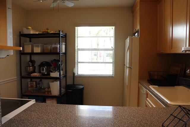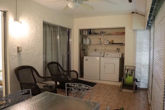 Furnished unit in Lake Rebecca, Golden Lakes. An active 55+ guard gated community with lots of social events. This Corner villa unit offers an updated kitchen and bathrooms, tile floors and wood floors in the bedrooms. A/C and tankless hot water heater replaced in 2019. Comcast cable for Phase B also includes internet. One pet is allowed, limit 30 lb. Courtesy Bus 2 days a week to shops and grocery. This one is the ''E'' Model, which is the largest floor plan in Phase B. It also has a formal dining room, and a Lg 10' wide enclosed patio, in addition to a sliding door from the master bedroom to the patio, not the usual window. You also have a satellite Pool in Lake Rebecca. Water filter is negotiable.
