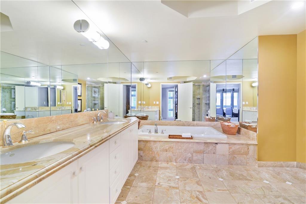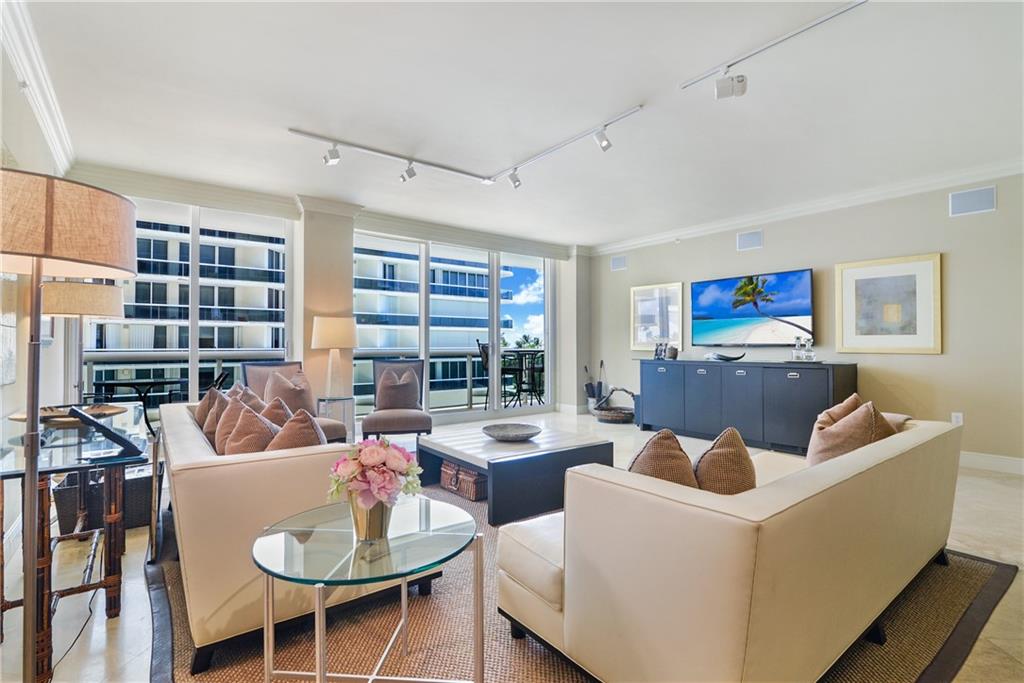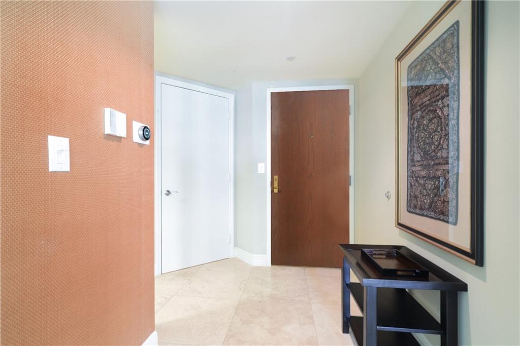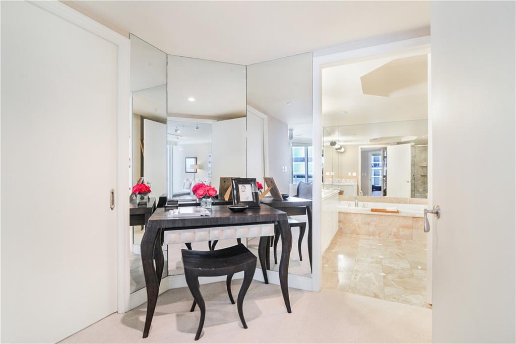 STUNNING ocean &pool views are yours from this 2 bed, 2.5 bath pied-a-terre!Step off the private elevator& enter into this contemporary living room w/ crown molding, saturnia floors,designer couches w/oversized pillows to sink into as you watch tv and relax. All windows have see- through shades w/black outs in the bedrooms. Granite kitchen boasts SS appl, coffered ceiling,SS undermount sink & Subzero. The open counter pass through from the liv room to the kitchen makes entertaining easy and fun! Master bedroom has a WIC, custom desk, queen size bed & sliding glass door to the private balcony. Luxurious marble master bath boasts separate shower & spa tub. Second bedroom has an ensuite bathroom. Artwork, decorative items not included. Owner will stay until Jan. 15, 2022.