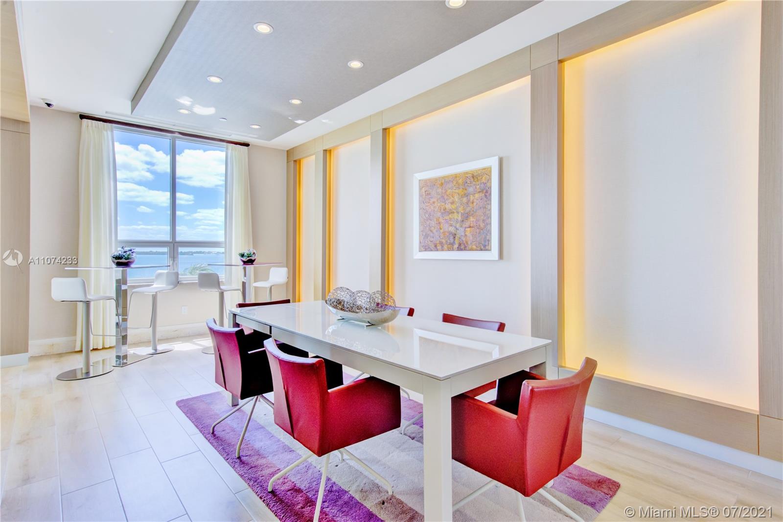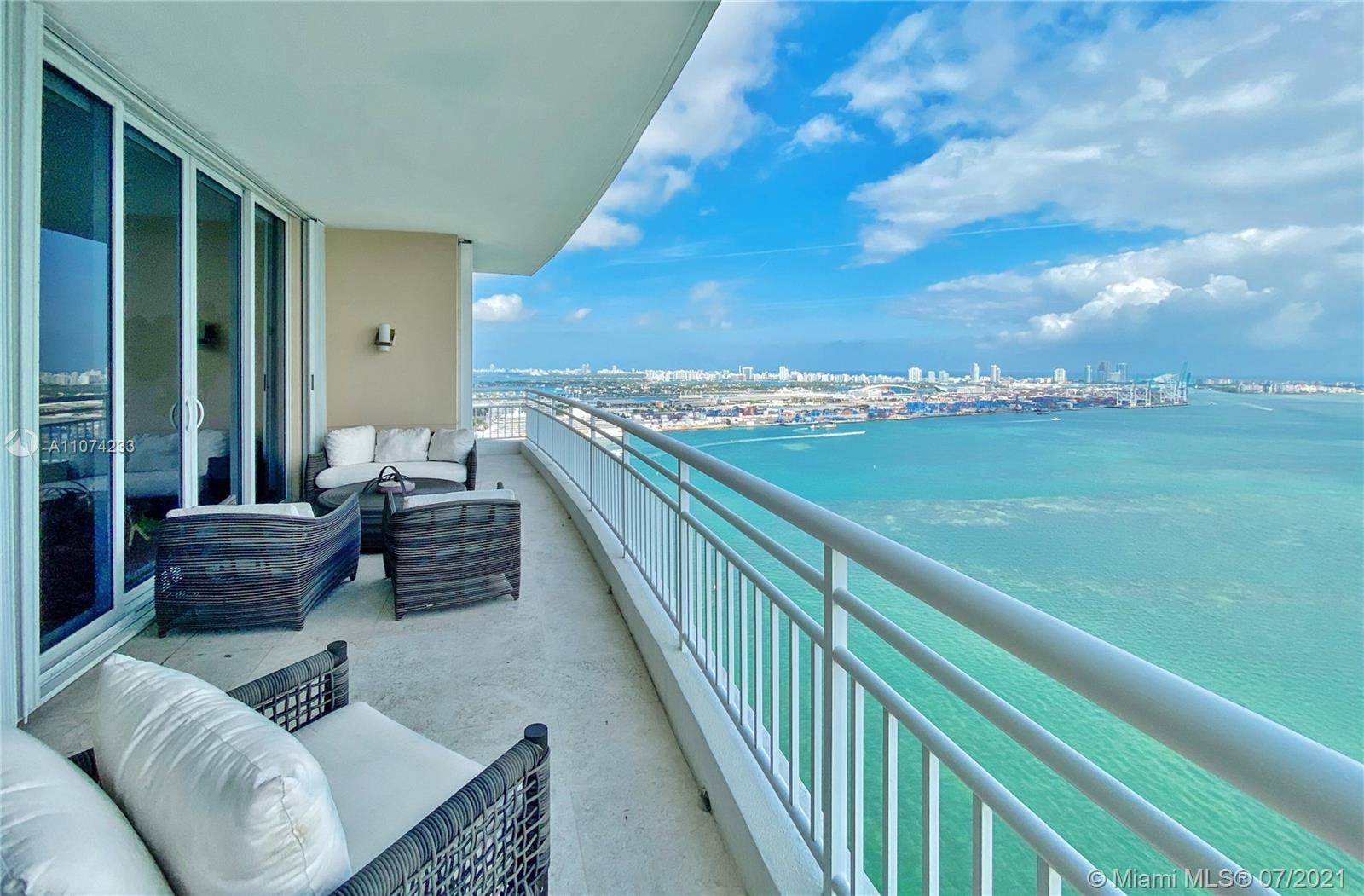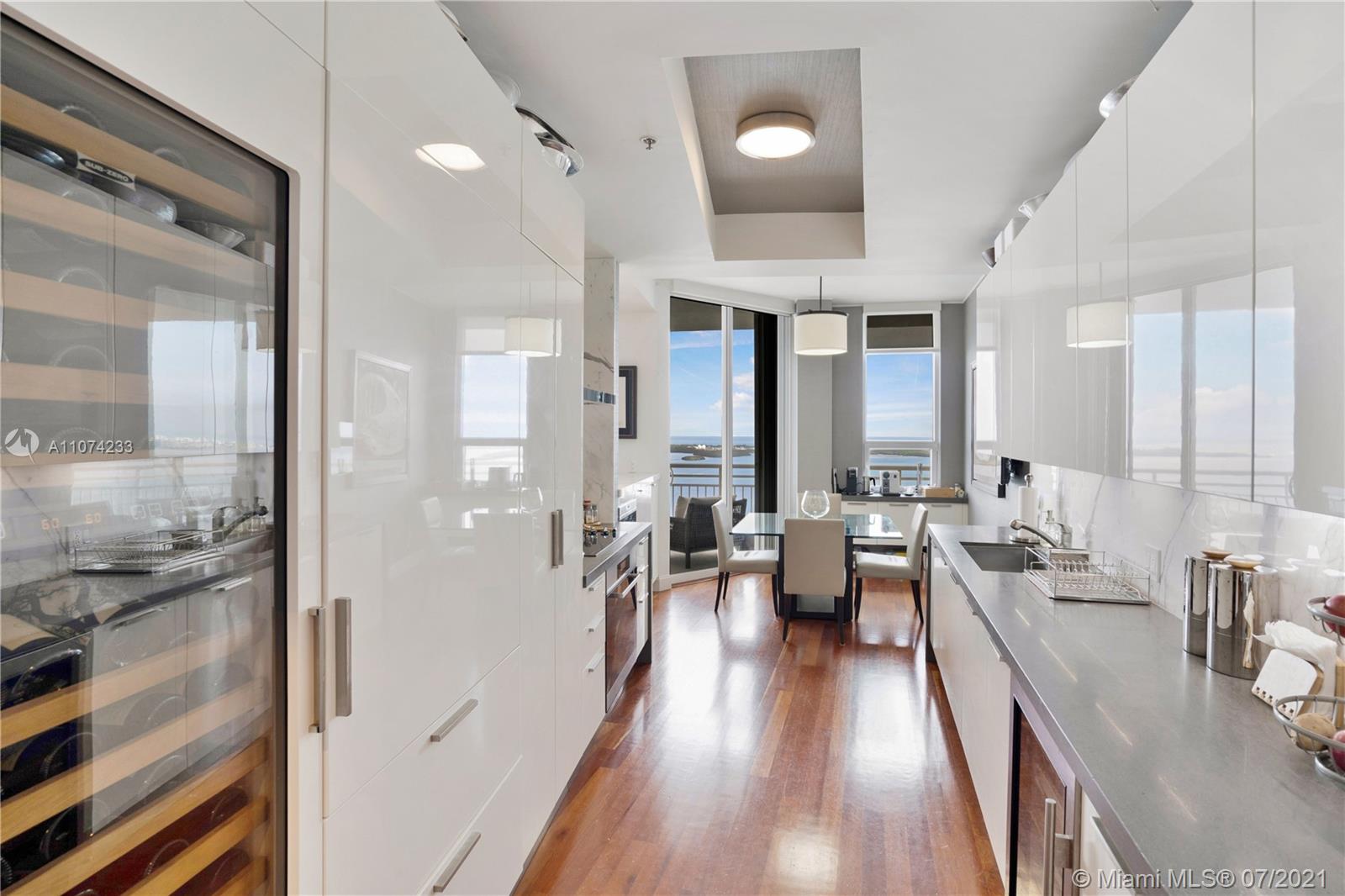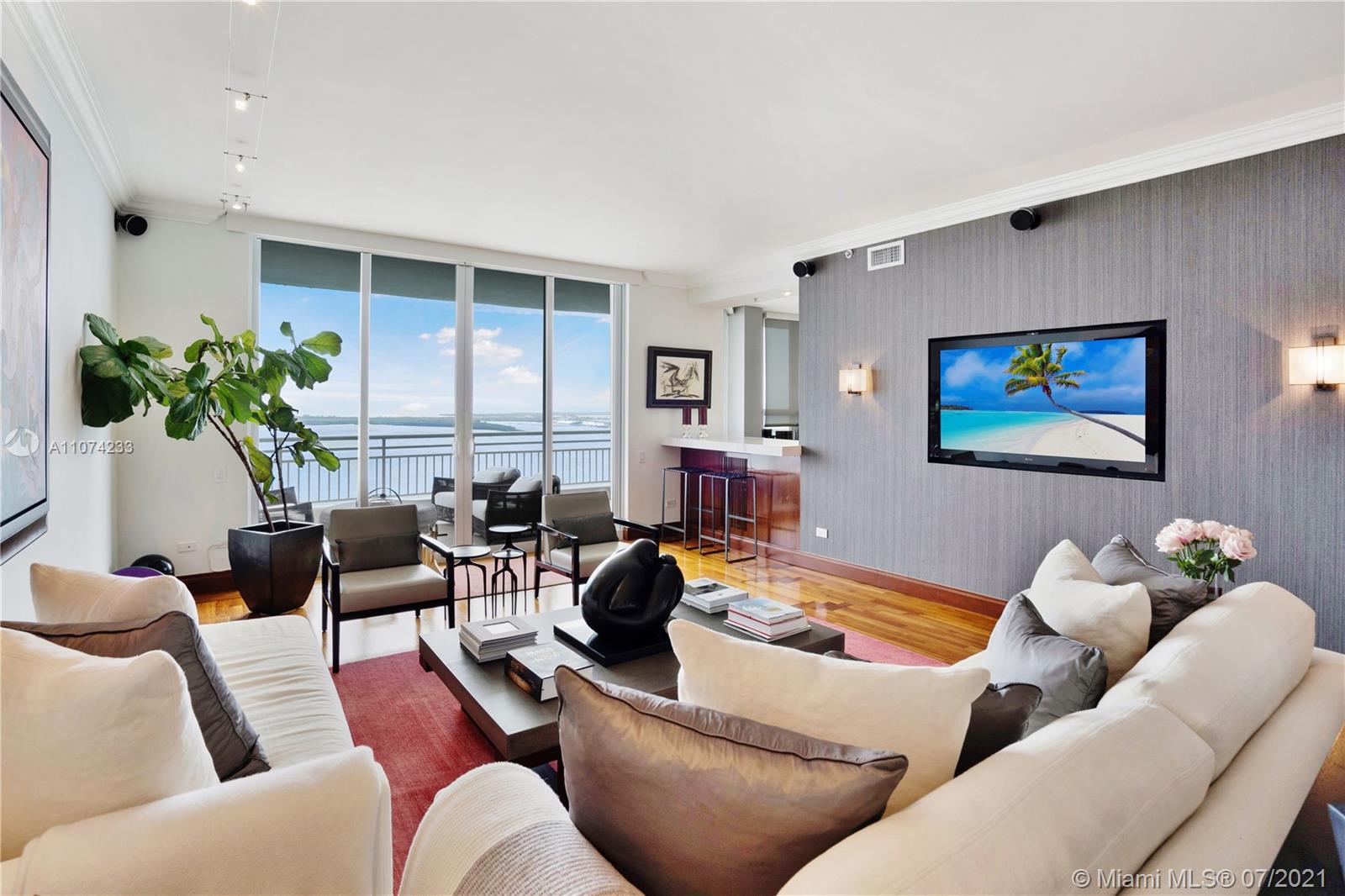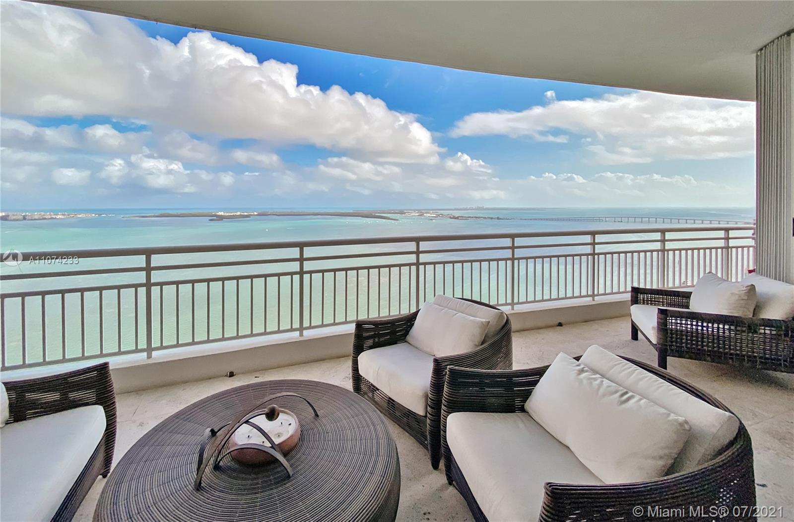 House in the Sky - STUNNING 3/3/1 at the luxurious Two Tequesta on Brickell Key - Rare high ceiling unit that feels like a house! 2 great parking spaces, 2 large storage lockers (w/ AC), stunning Bay/Ocean/Fisher Island/Key Biscayne/Miami Beach views from a massive balcony, American cherry wood floors, upgraded lighting/electronics, Phillip Jeffries wallpaper from Holly Hunt, electric blinds (in living room/kitchen/master bedroom) a stunning kitchen w/ Mia Cucina cabinetry, Italian Calacatta Marble, Sub Zero/Miele/Wolf appliances (including a giant wine fridge), an eat-in breakfast area w/ a pass through, a master suite w/ amazing views, large built-out closets, & a gorgeous bathroom w/ waterworks fixtures, a double vanity, jacuzzi tub, and Gaudi marble slab flooring. This unit won't last!