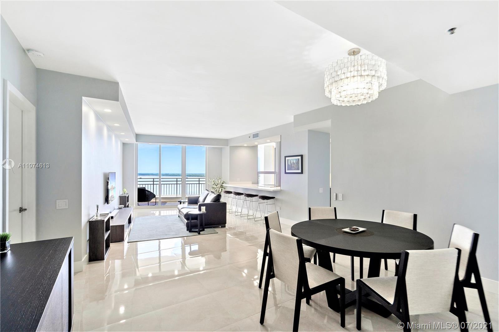 Enjoy a spacious & completely renovated 1 Bedroom + Den (incl. a Queen size Murphy bed & closet) w/ 2 full bathrooms in the luxurious Two Tequesta Point on Brickell Key. Your home has a 1,306 sq/ft open layout, stunning views of the Bay, South Beach, Key Biscayne, & Fisher Island, 24x24 Spanish Tile (incl. balcony), Miele/Wolf appliances, automated Bandalux shades, upgraded AC (w/ Nest) & Water Heater, a large balcony, and a master walk-in closet. Two Tequesta is an elegant building w/ tennis, one of the top fitness centers in Miami (basketball/racquetball/cross-fit/massage/pilates/aerobics/free weight/cardio), a brand new community room, a bayside resort style pool/hot tubs, a BBQ area, two conference rooms, a kids room, free wifi in common areas, free valet, 24/7 security, and more...