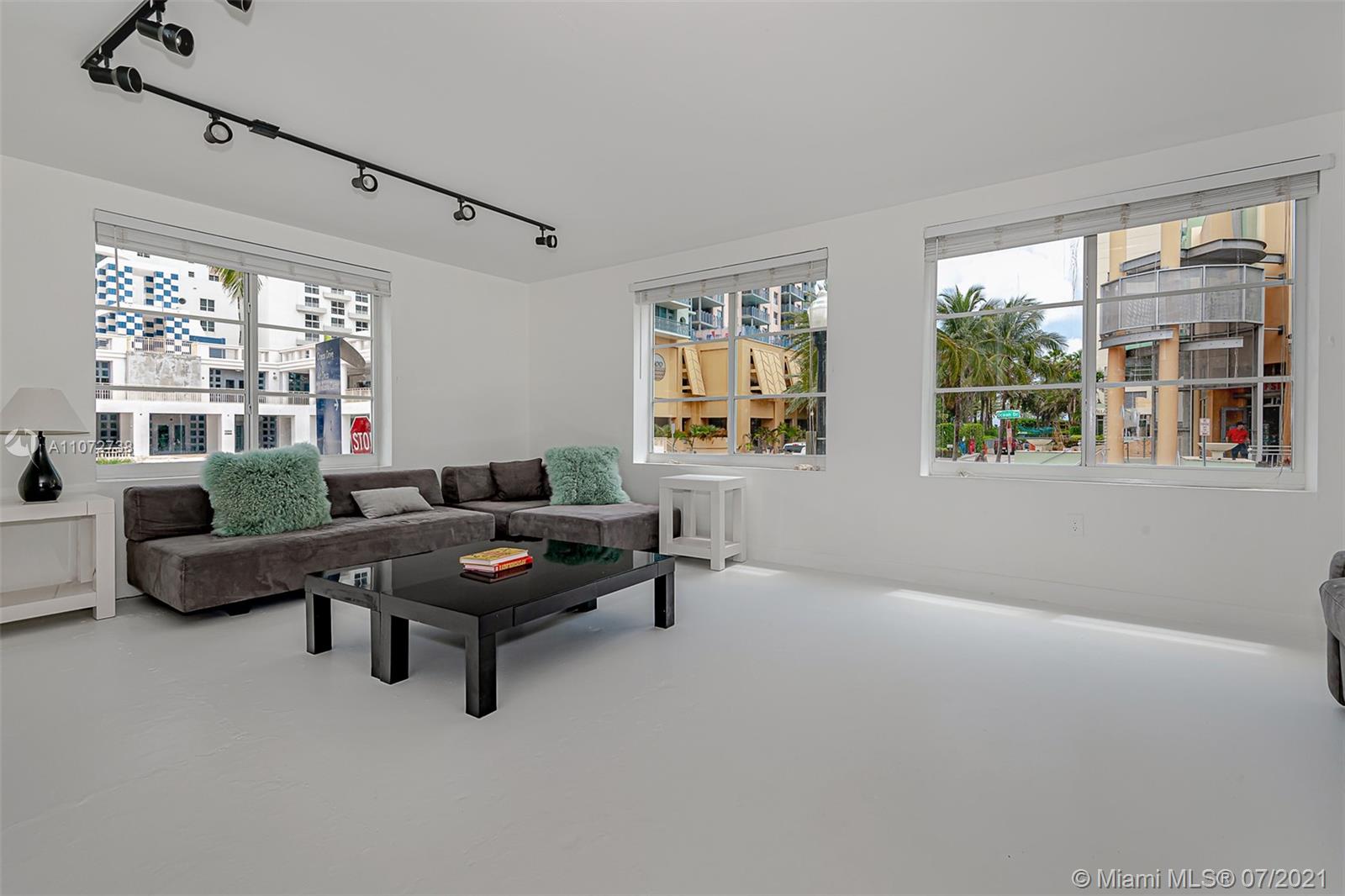 Live on world famous Ocean Drive. Spacious 2 story, 2 bedroom/ 2 bathroom unit. Full of light and directly across from the 15th street Beach access. Open kitchen, tile and concrete living space upstairs - bedrooms downstairs. Amazing opportunity to own a piece of South Beach history. Adjacent units 203 & 205 available as well. Can be acquired separately or as a package deal. Use as live/work space, vacation home or investment. Ask for more info on the Ocean drive transformation planned by the city of Miami Beach.