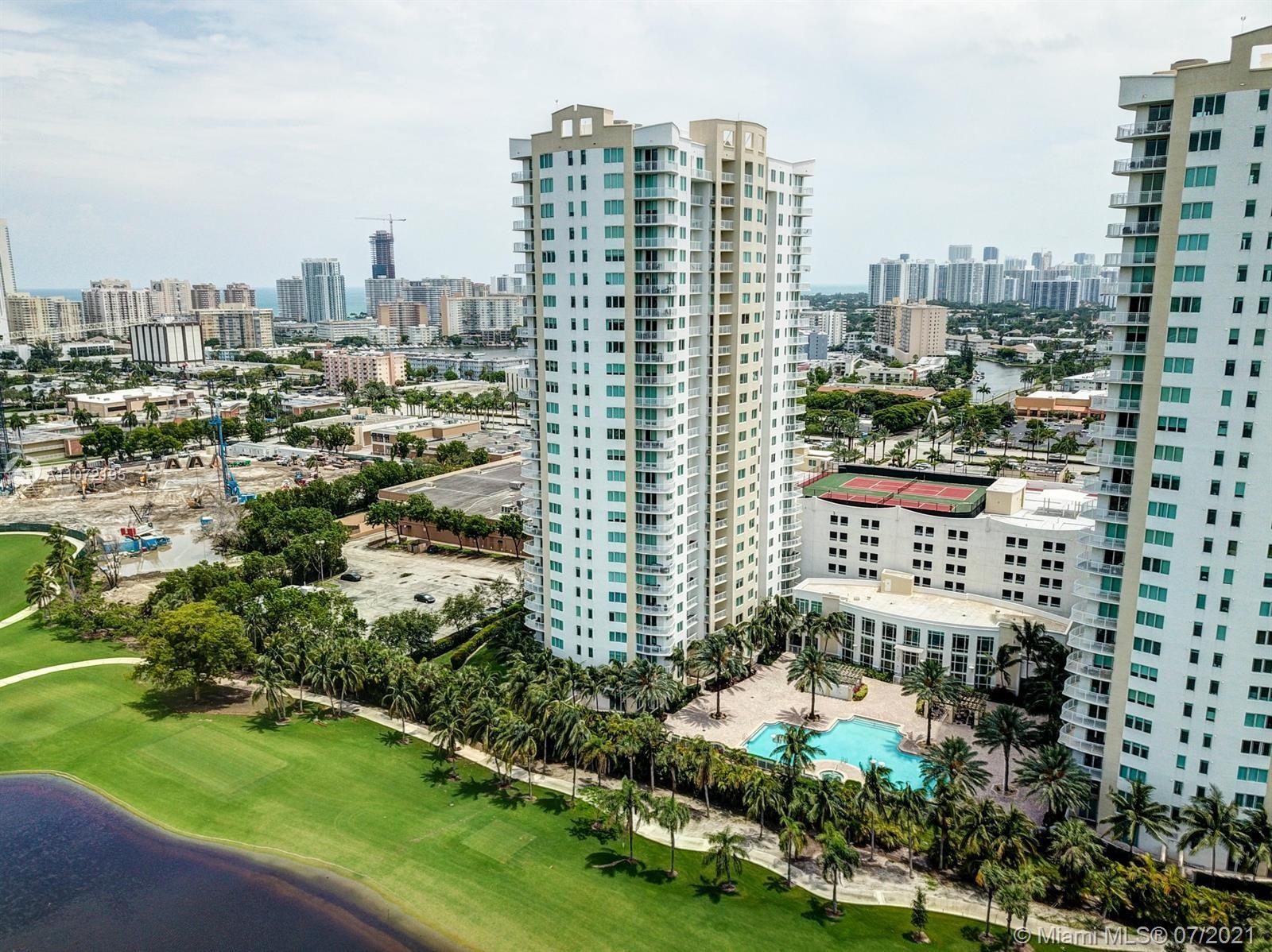 Presenting the best opportunity in the Duo! This corner unit features an incredible wrap-around balcony with view to the golf and city. Its' 1,354 sq ft efficiently spread between 2 large bedrooms make this home one of the most popular units in the complex. 10F CEILINGS Located within minutes of restaurants, Gulfstream Park, Aventura Mall, the beach and other stores, it is considered by many as the hidden gem of the market. The building features heated pool, spa, steam room, full gym, billiard room, tennis courts, jogging track, garage and much more. This unit includes 1 garage parking space + 1 assigned valet spot at no charge. The building includes an appliance contract with Total and basic cable/internet is included. It is truly one of the best buildings in town