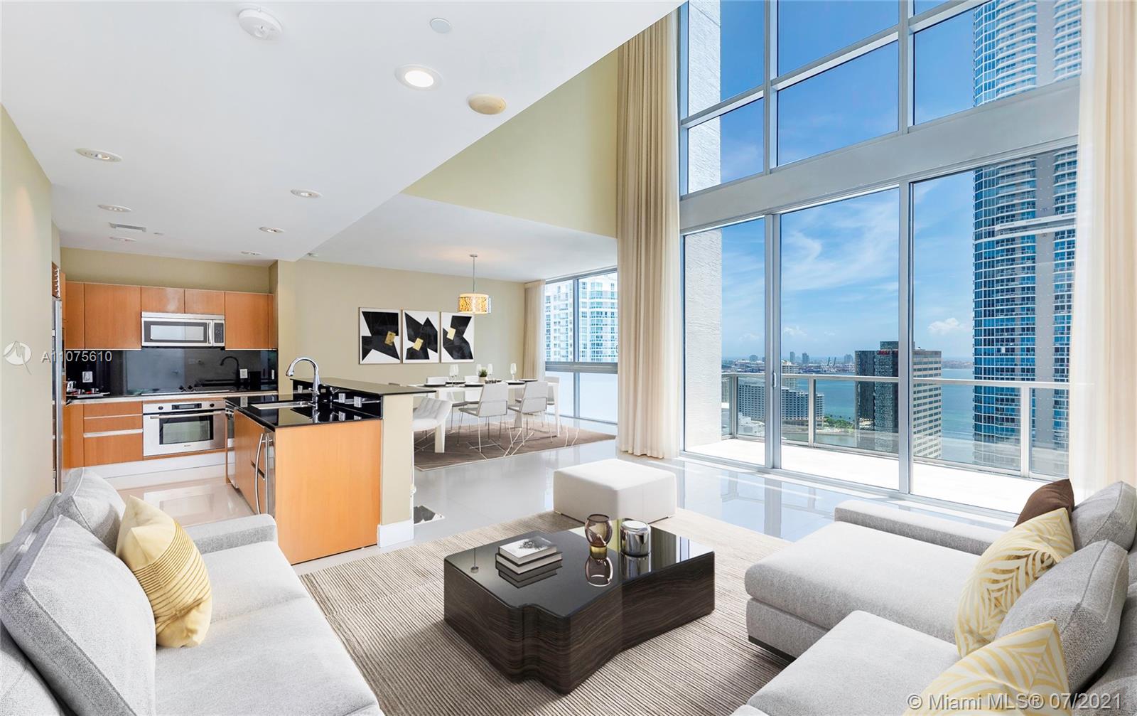Beautiful two-story Penthouse on Brickell Avenue. Spacious floor plan which spans both the upper 34th & 35th floors. Interior features include an elegantly designed residence that boast breathtaking bay views, towering high celling in living room, second floor split-bedroom plan plus living area, and a deep awareness of seamlessly connected living. Though the beauty of this two-story Penthouse is undeniable, it is also the myriad of thoughtful amenities that makes 1050 Brickell unforgettable. Amenities include 24-hour security and concierge, valet, fitness center, swimming pool, sundeck, game room with billiards table, yoga room, steam room, jacuzzi, spa, virtual golf room, wine lounge, and much more. Close to great shopping, fine dining and financial center. You will love coming home !