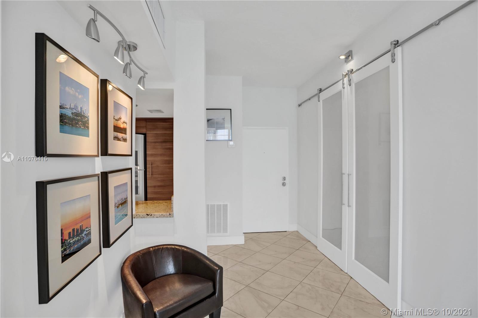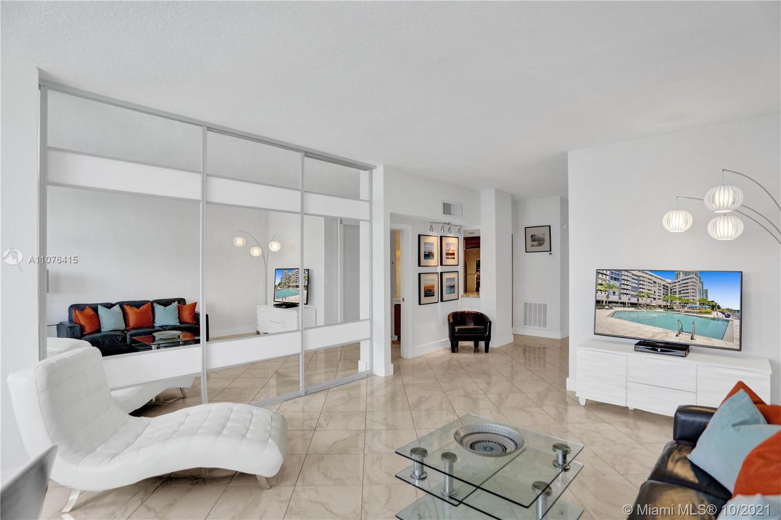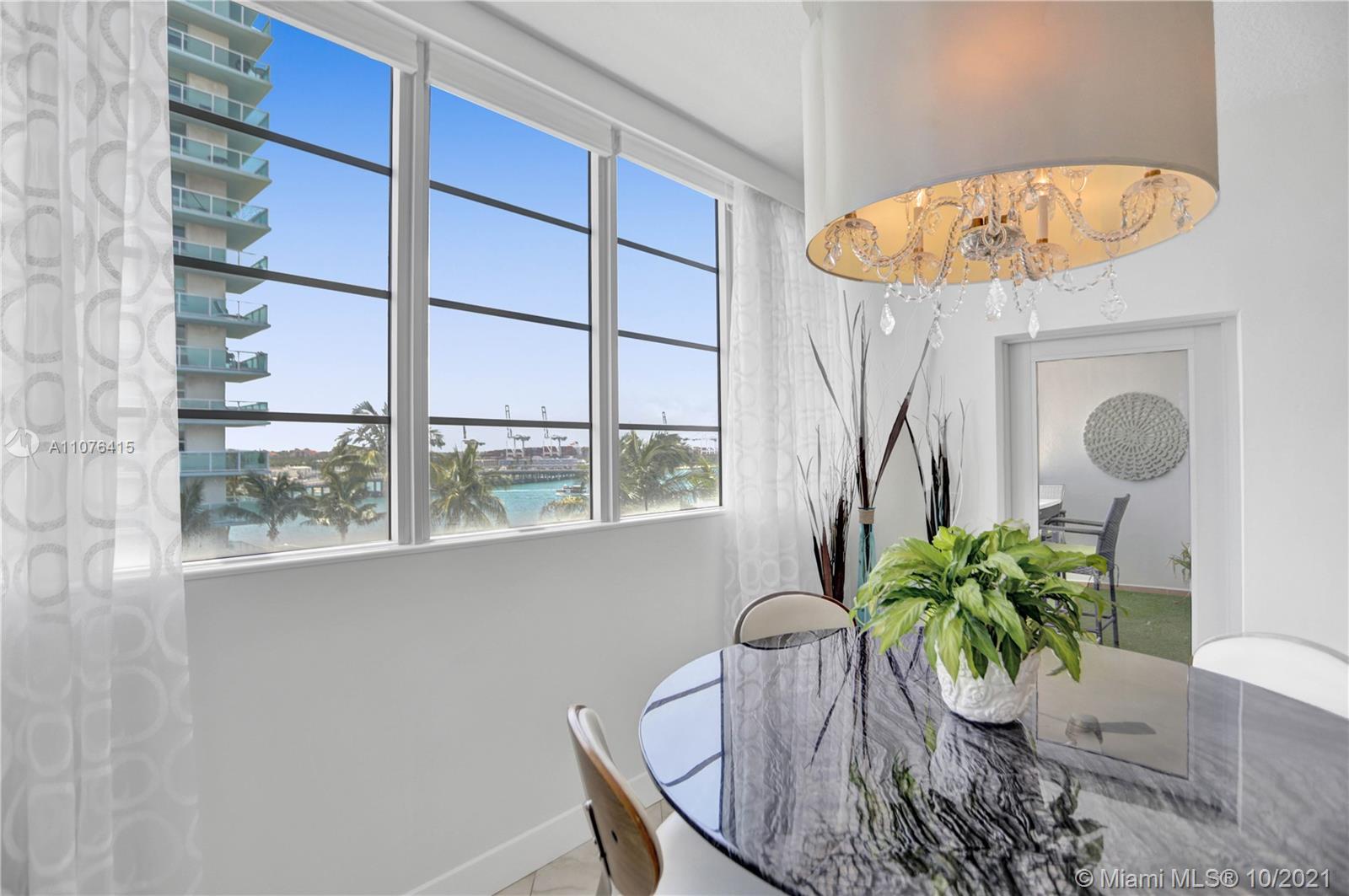 This Penthouse unit has been entirely upgraded with elegant finishes. Functional floor plan featuring high ceilings and impact windows/doors. The spacious bedroom has a balcony overseeing the bay. With a well appointed den, currently being used as a guest room, it truly feels like a two bedroom unit! Bathroom has been tastefully updated with gorgeous marble tile and new vanity and storage cabinetry. There is a Washer/Dryer in the unit and a utility sink for additional convenience. Covered parking and great location with a high walkability factor. The 40 year re-certification was recently completed. Building amenities include gym, convenience store, on-site management, concierge, boat slip, etc. Furniture is optional making this a truly move in ready unit!