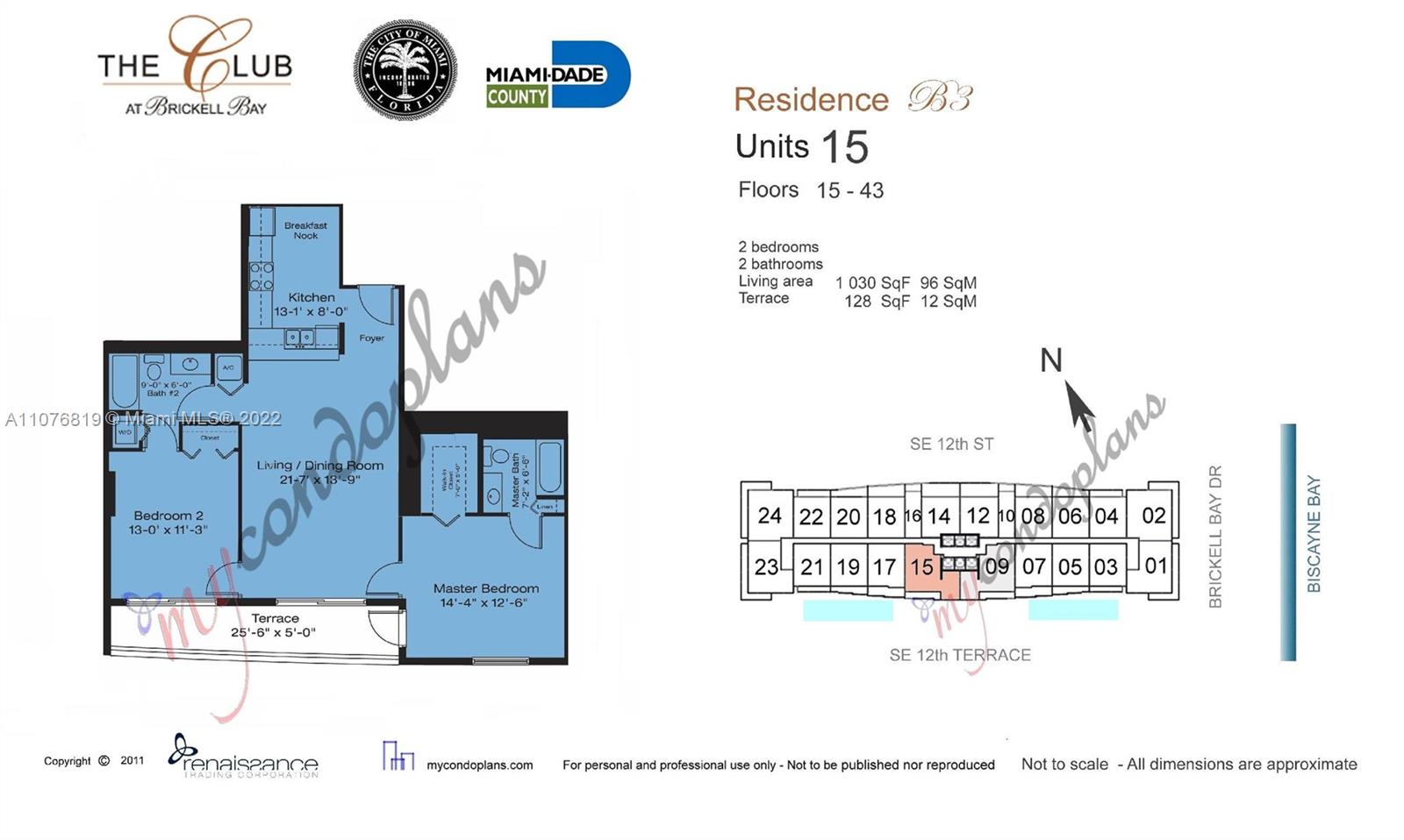 • Living Area: 1030 Ft² / 96 M²