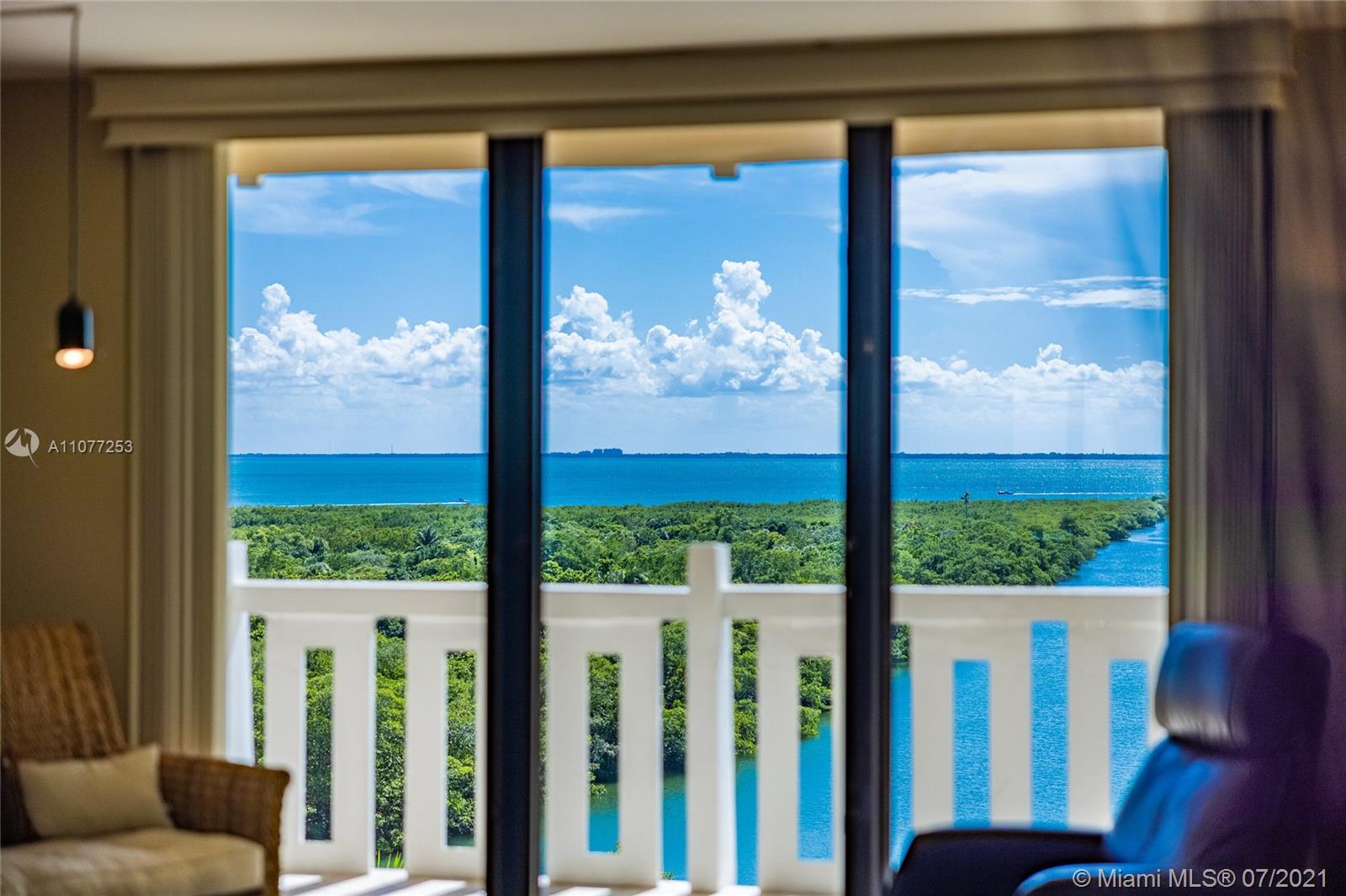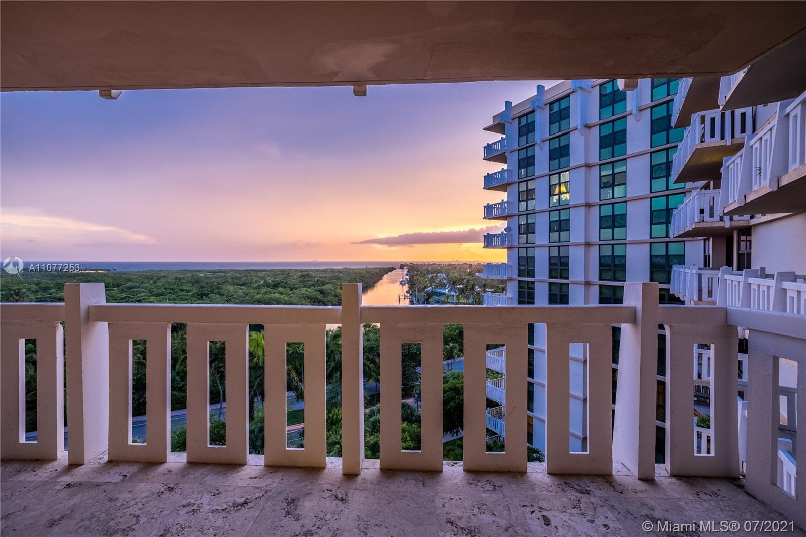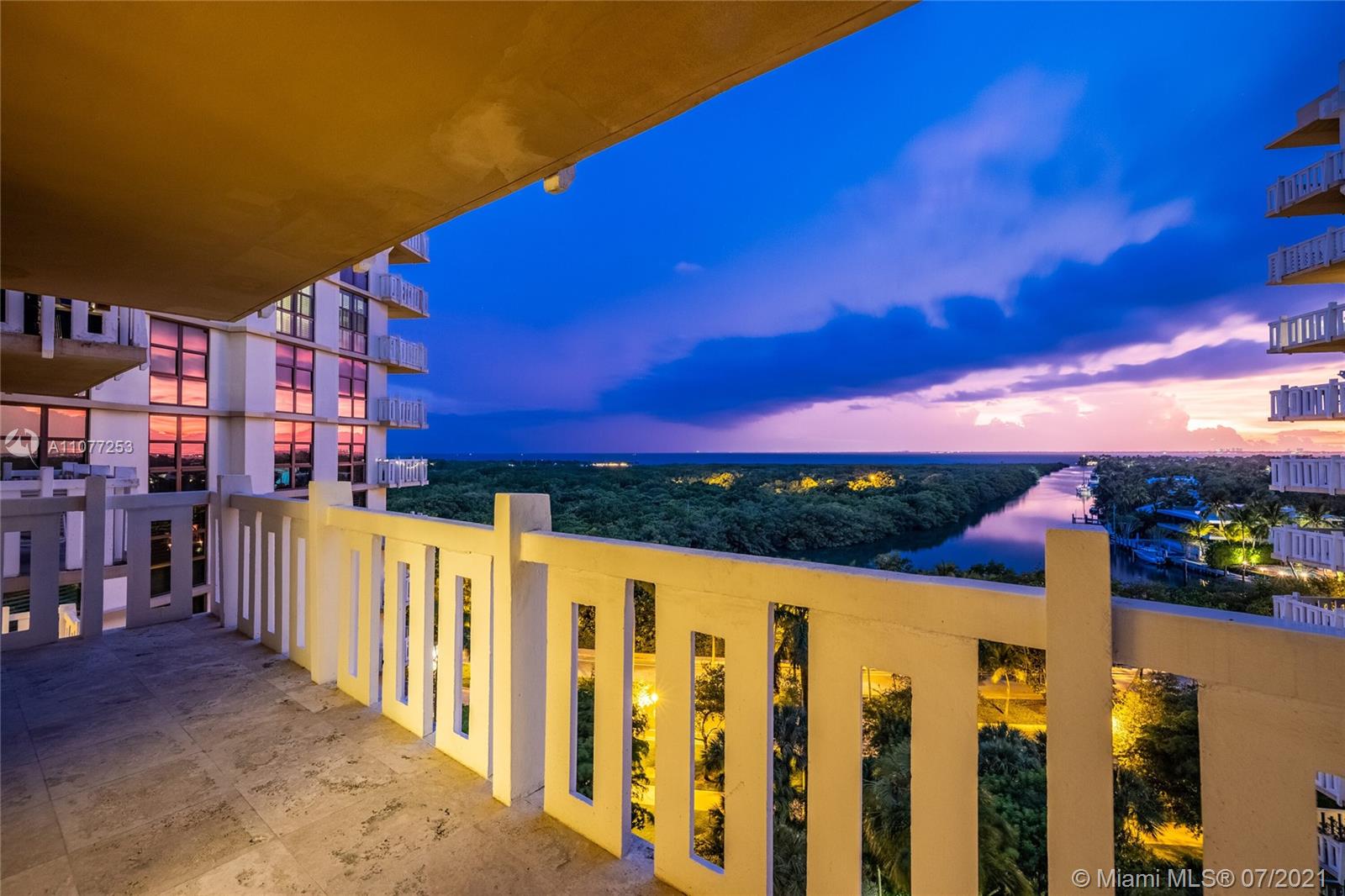 Resort-like serenity awaits in this Island Paradise! Spectacular views of the bay, canal, and state park in this updated flowing unit with double balconies. Enjoy spacious open living, dining and large kitchen with new Bosch appliances. Lots of counterspace to whip up your favorite meals and entertain family and friends. For extra privacy, unwind in split bedrooms—extended main suite retreat with private balcony on one side and guest room and bath on other. Polished travertine marble floors throughout, impact windows, separate storage unit. Great amenities with private access to incredible beach, heated pool, fitness center, tennis court, gazebo and BBQ. Assessment paid. All in a fantastic Key Biscayne location close to shops, restaurants, and natural attractions.