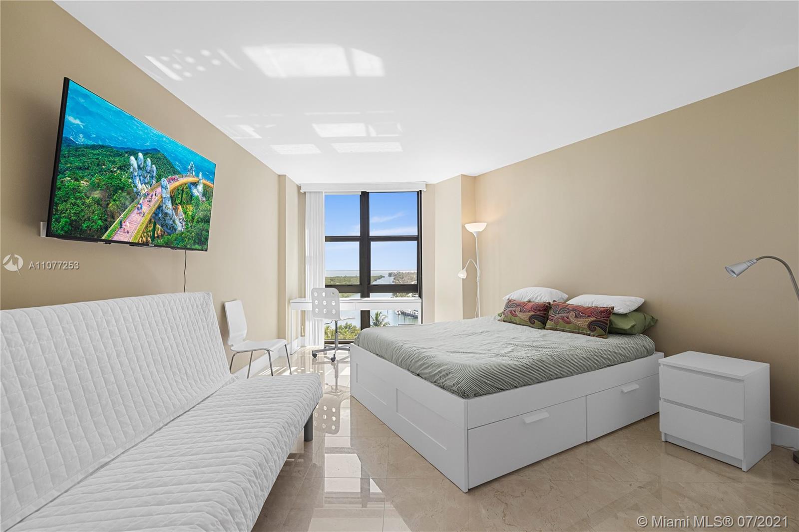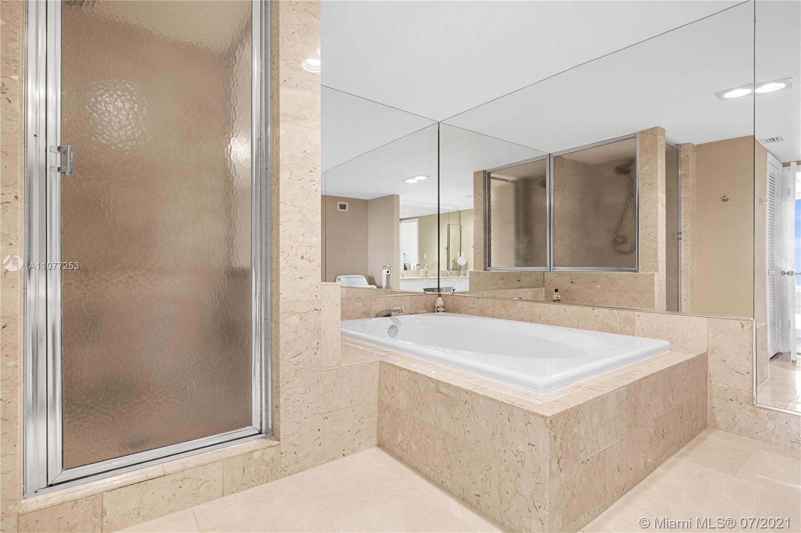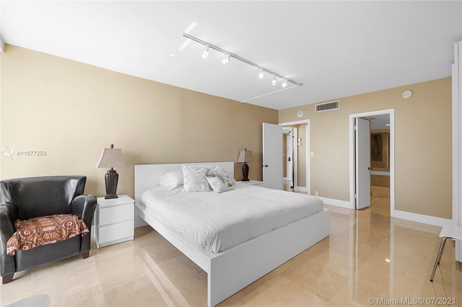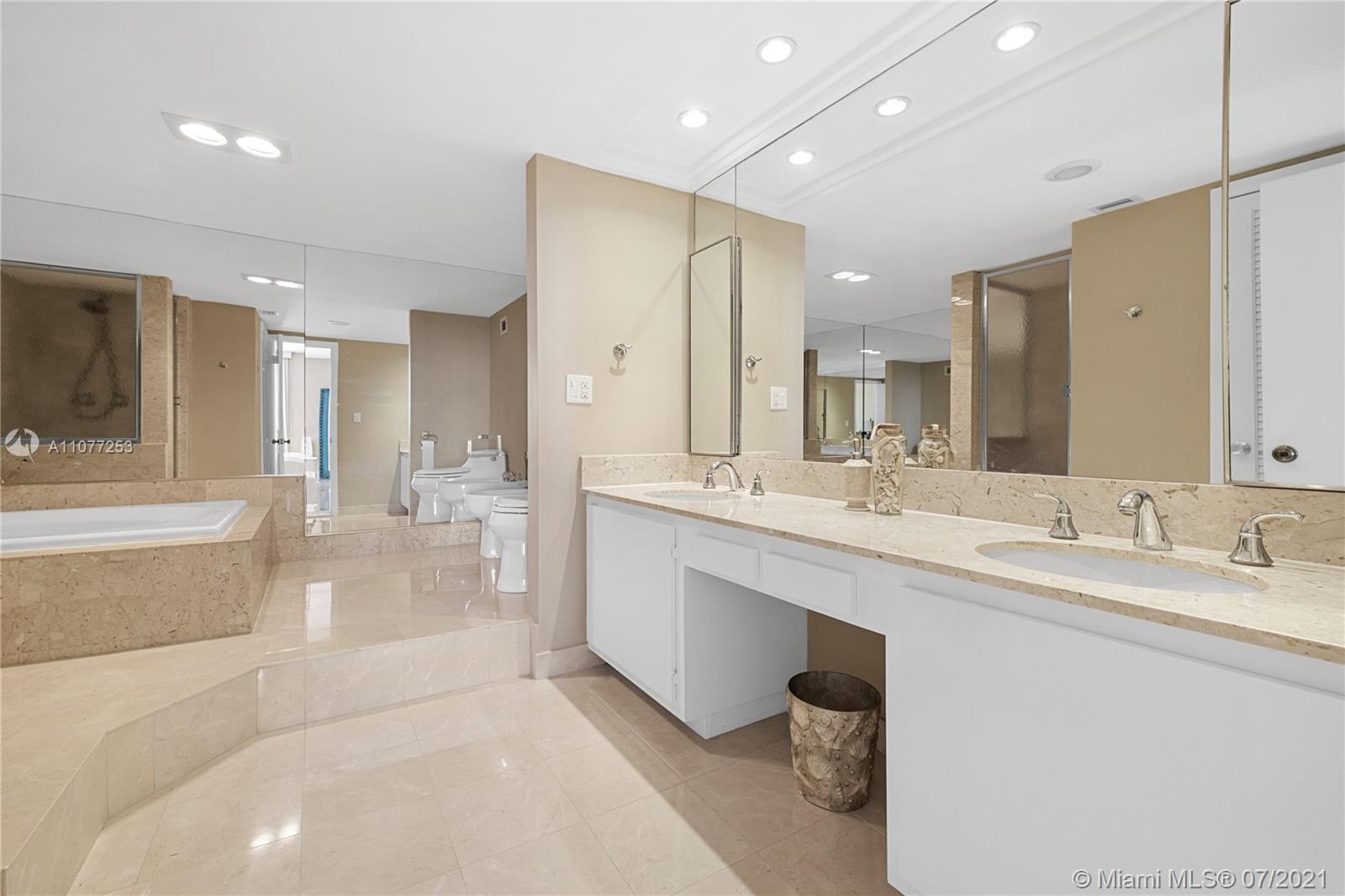 Resort-like serenity awaits in this Island Paradise! Spectacular views of the bay, canal, and state park in this updated flowing unit with double balconies. Enjoy spacious open living, dining and large kitchen with new Bosch appliances. Lots of counterspace to whip up your favorite meals and entertain family and friends. For extra privacy, unwind in split bedrooms—extended main suite retreat with private balcony on one side and guest room and bath on other. Polished travertine marble floors throughout, impact windows, separate storage unit. Great amenities with private access to incredible beach, heated pool, fitness center, tennis court, gazebo and BBQ. Assessment paid. All in a fantastic Key Biscayne location close to shops, restaurants, and natural attractions.